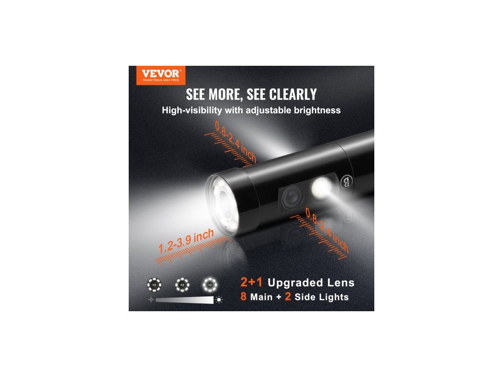 Endoskop s trojitým objektivem, 11,4cm IPS obrazovka, boroskopická inspekční kamera s objektivem 1080P, polotuhý hadí kabel, 8 světel, baterie 2860 mAh, vodotěsný endoskop pro auto, stěnu, odpad