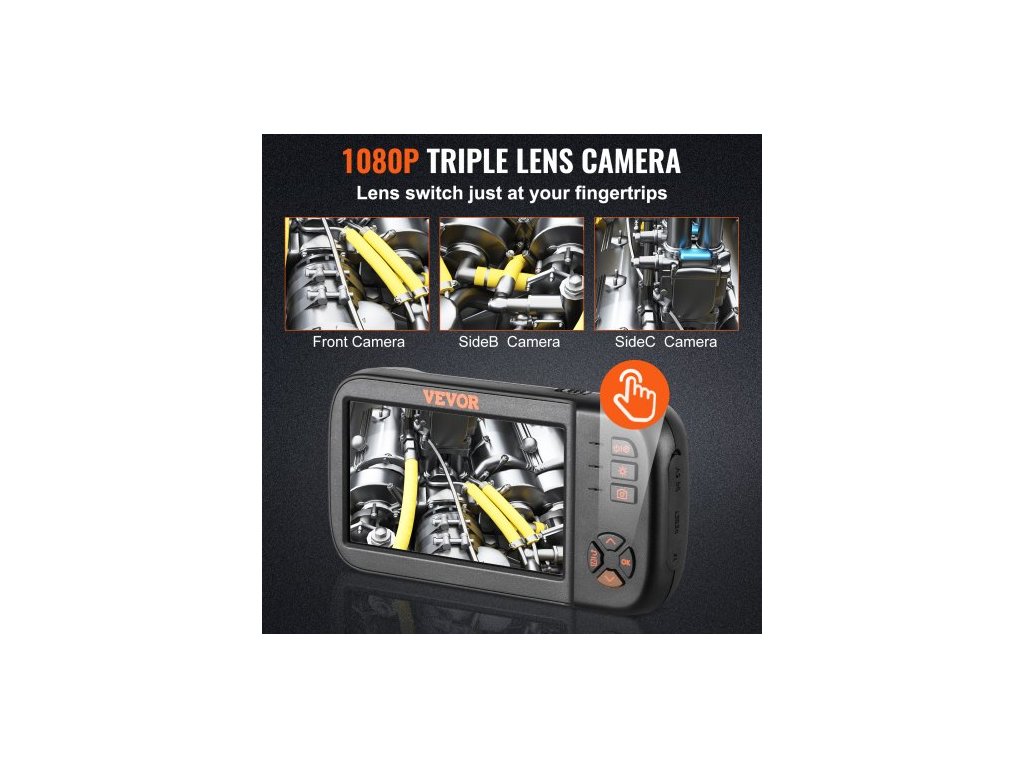 Endoskopická kamera se třemi objektivy, 11,4cm IPS obrazovka, boroskopická inspekční kamera s objektivem 1080P, polotuhý hadový kabel, 8 světel, baterie 2860 mAh, vodotěsný endoskop pro auto, zeď a odpadVysoce kvalitní trojitý objektiv