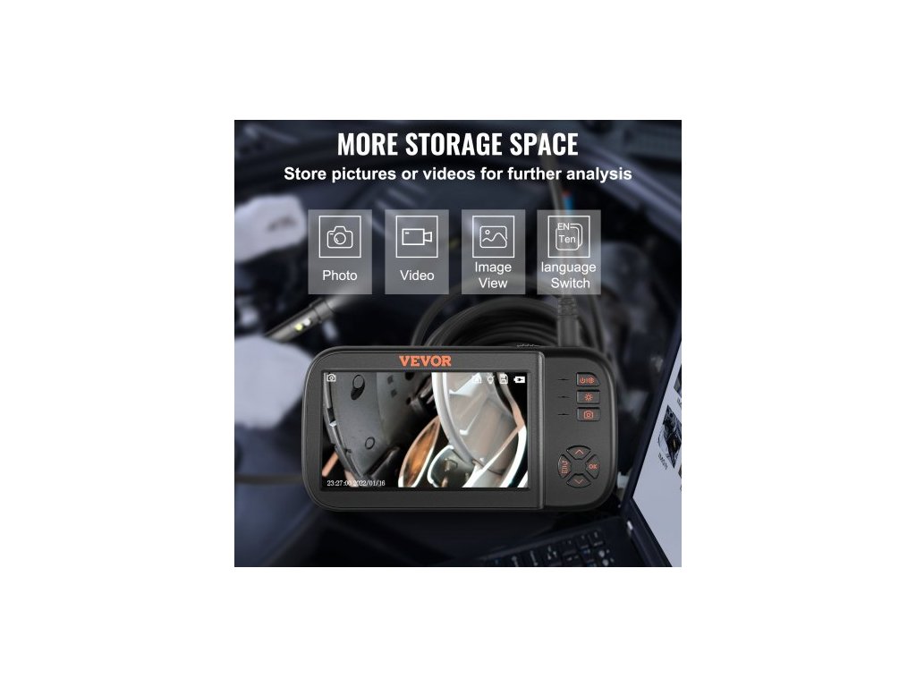 Rozlišení obrazovky: 854 x 480,Typ monitoru: 4,5" IPS displej,Nastavitelná LED světla: 6+2,Kapacita baterie: 2860 mAh,Provozní teplota: -10℃—70℃,Délka kabelu: 5 m,Počet objektivů: 3,Rozlišení objektivu: 1920 x 1080,Stupeň vodotěsnosti: IP 67,Ohnisková vzdálenost:Přední: 1,2–3,9 palce; Strana A/B: 0,8–2,4 palce, Průměr objektivu: 8 mm, TF karta: 32 GB