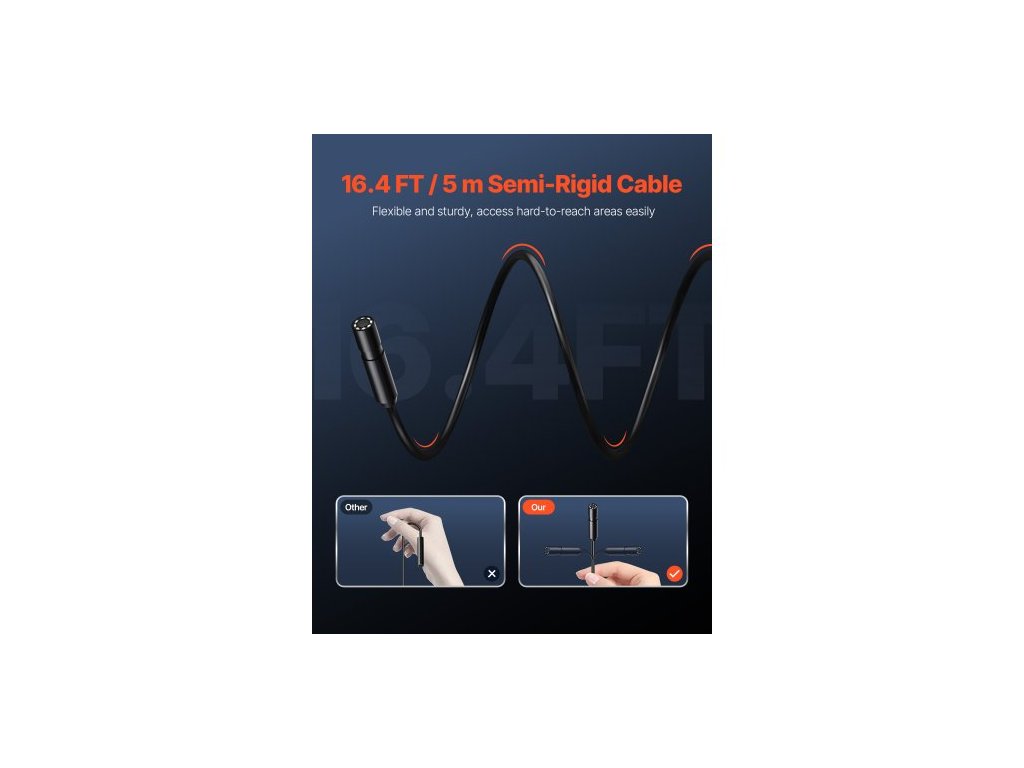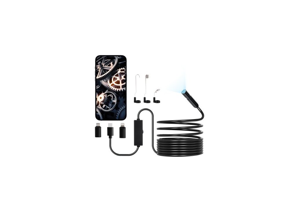 Endoskopická kamera se světlem, 1920P HD boroskop pro Android a iOS, inspekční kamera s 8 LED světly a 5m polotuhým kabelem, 2x zoom, vodotěsná kamera s hadím záběrem IP67 pro auto a instalatérství