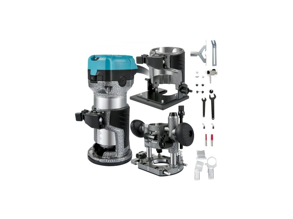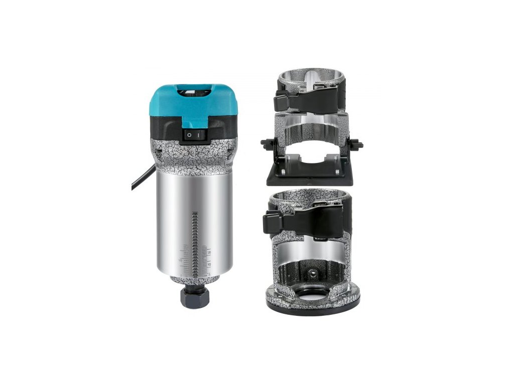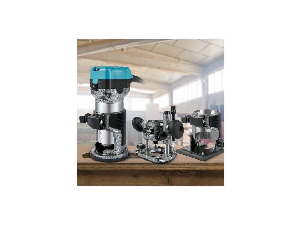 frézka, 710W dřevěná frézka, frézka na dřevo se 3 kleštinami, dřevěná frézka s pevnou, ponornou a naklápěcí základnou, dřevěná frézka s hliníkovým pláštěm a rotační 13000-33000 ot./minKompaktní dřevěná frézka