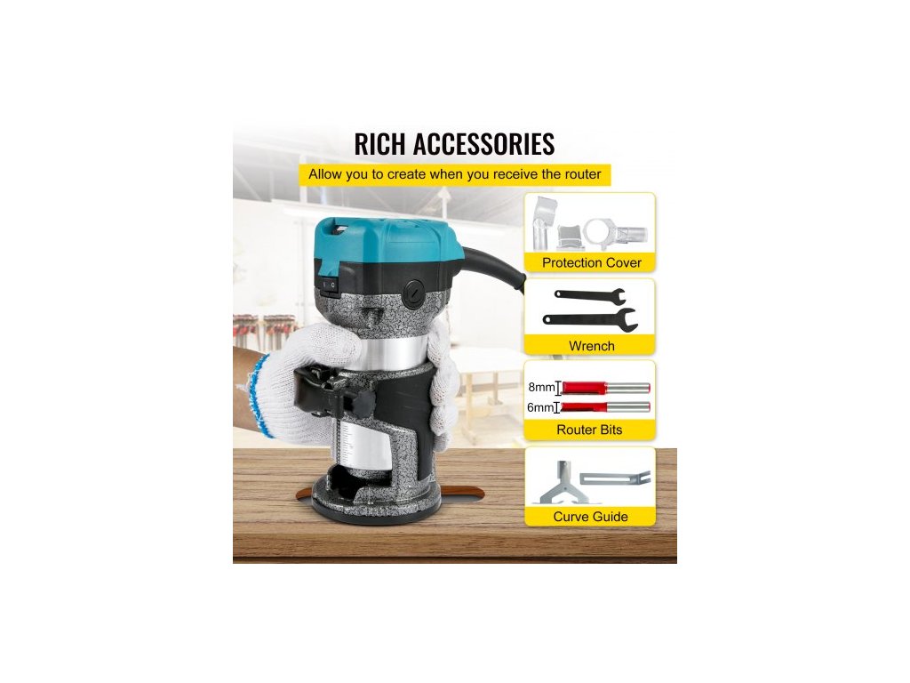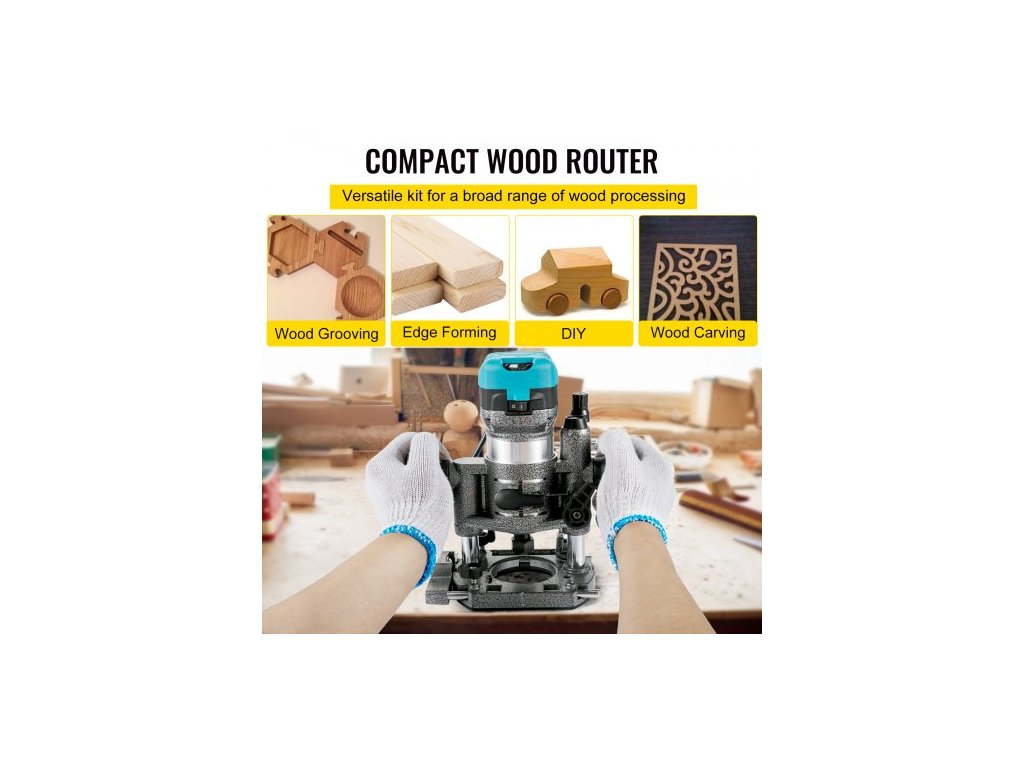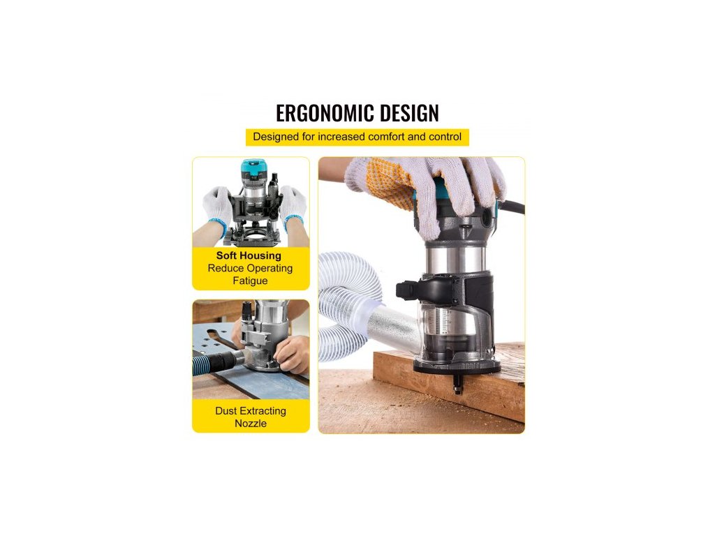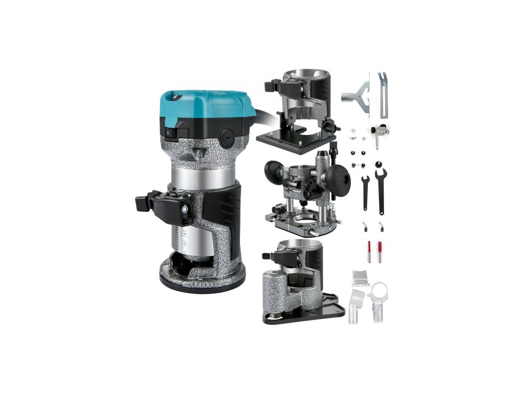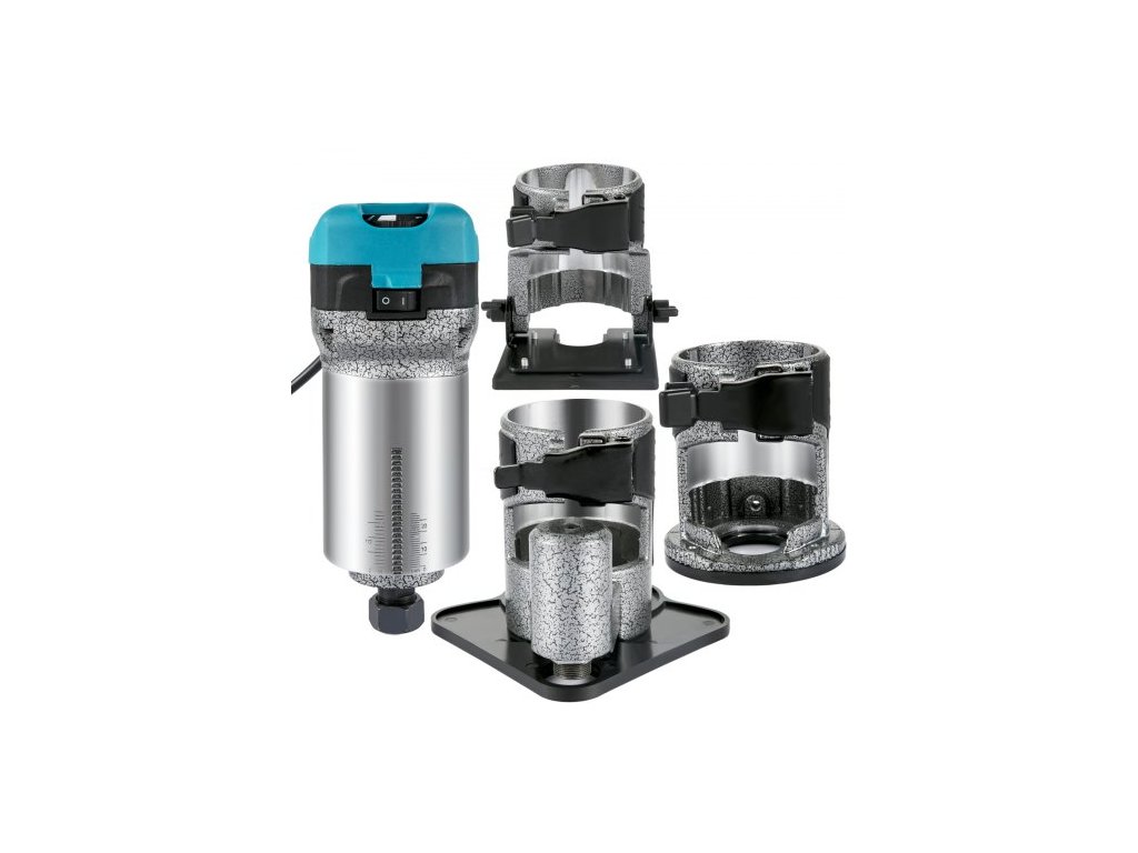 frézka, 710W dřevěná frézka, frézka na dřevo se 3 kleštinami, dřevěná frézka s pevnou a ponornou a naklápěcí a odsazenou základnou, dřevěná frézka s hliníkovým pláštěm a variabilním otáčenímKompaktní dřevěná frézka