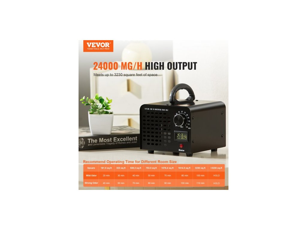 Generátor ozonu 24000 mg/h, ozonizátor, odstraňovač zápachu s časovačem 0-120 min