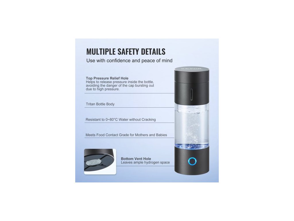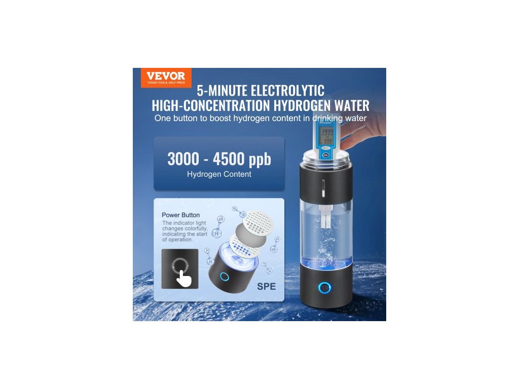 Obsah vodíku: 3000 - 4500 ppb, ±10 %,Kapacita: 8,1 oz / 230 ml, ±10 %,Číslo modelu položky: EHM-H13,Rozměry: Φ2,5" x 7,6" / Φ63 x 193 mm,Materiál: Hliníková slitina (eloxovaná) + ABS + Tritan,Hmotnost: 1,2 lbs / 0,54 kg, ± 5 %,Napětí a proud: DC 3,7 V / 1800 mAh
