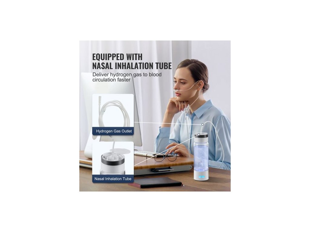Generátor vodíkové láhve , přenosný výrobník vodíkové vody o objemu 380 ml/379,9 g, technologie SPE, ionizátor vody bohaté na vodík s nosní inhalační trubicí a samočisticím systémemVysokokoncentrovaný vodíkový kelímek