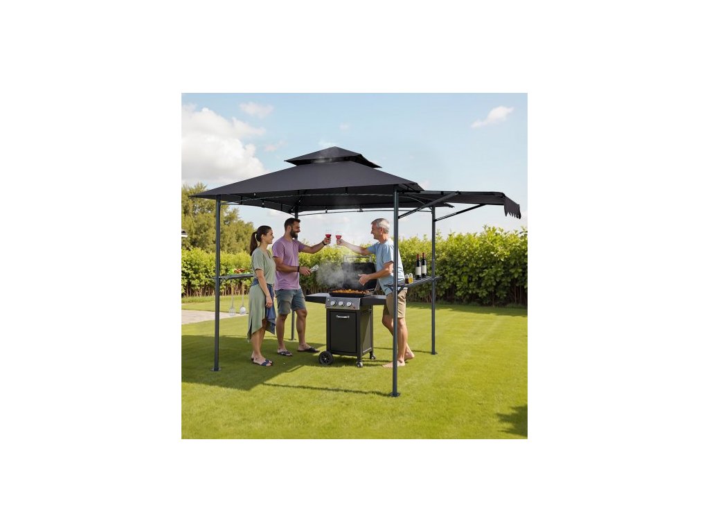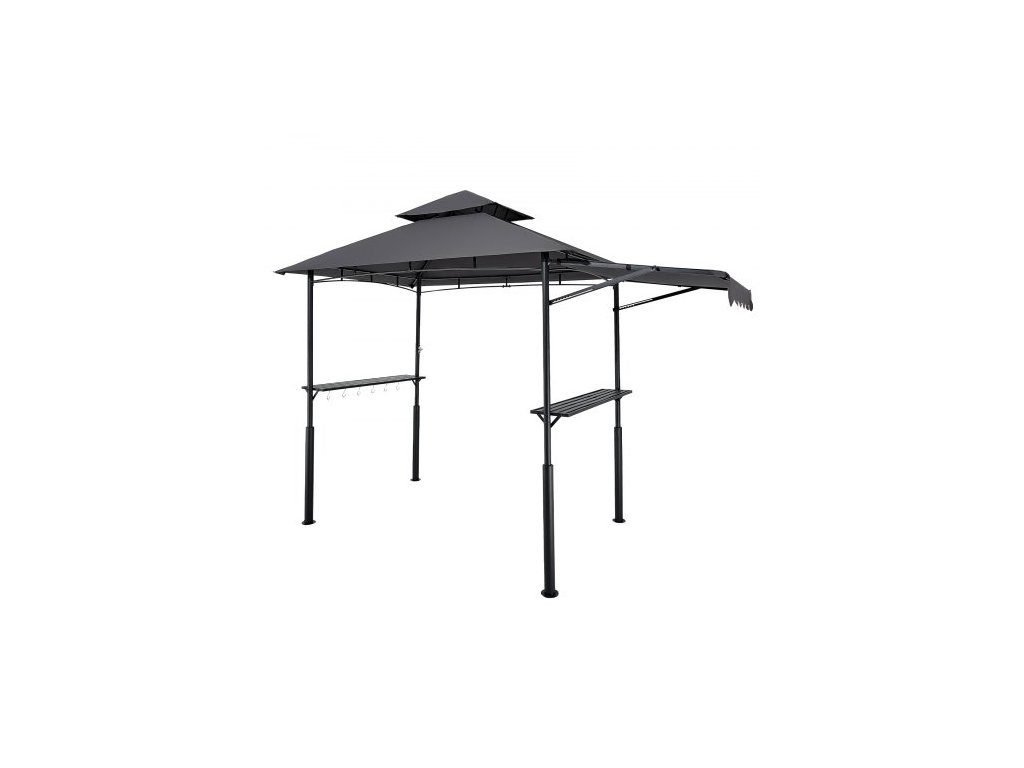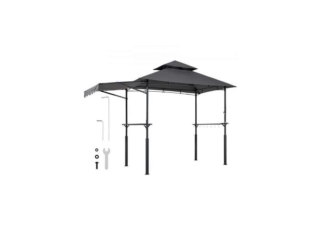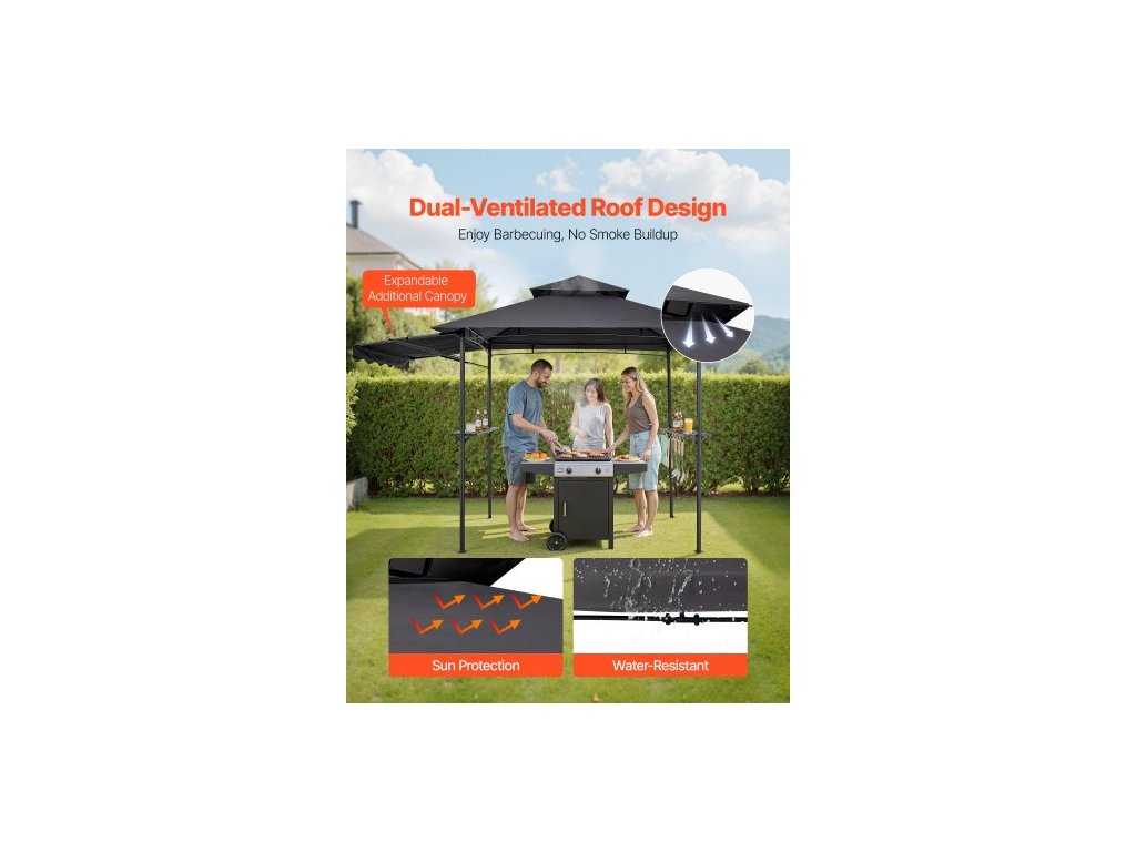 Grilovací altán , 2,43 x 1,5 m, dvoupatrový, BBQ altán s přídavnou markýzou, práškově lakovaný ocelový přístřešek na terasu s 2 bočními policemi, otvírák na lahve a háčky, venkovní grilovací stříška do zahrady