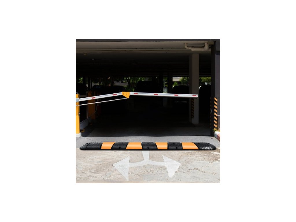 Gumové zklidňující zařízení , jedna jednotka s dvojitými kanály, modulární konstrukce o délce 72", nosnost až 22 000 liber, rozměry 72,8 x 12,2 x 2,2, vhodné pro asfaltový, betonový a štěrkový povrch