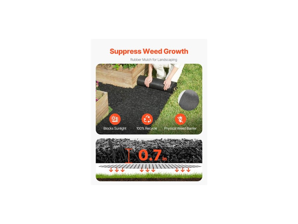 Gumový mulč pro zahradní architekturu, mulčovací rohož z recyklované gumy 96 x 22 palců, permanentní gumová cesta, přírodní černý mulčovací zahradní okraj pro rostliny, zeleninu a květinovou záhonuFyzická ochrana proti plevelu