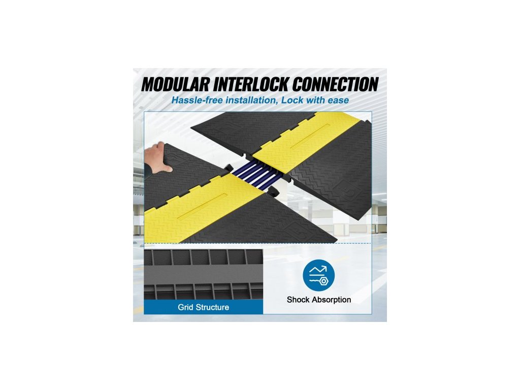 Pryžová ochranná rampa na kabely 114,5x80x5 cm, 5kanálový kryt kabelů s nosností 10 t, odolný kryt kabelů, rampa na hadicové kabely, příjezdová cesta, zpomalovací rampa s odklápěcím krytem pro vnitřní i venkovní použitíOchranná rampa na kabely má PVC odklápěcí horní kryt, který můžete snadno otevřít a umístit kabel během chvilky.