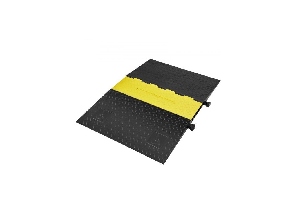 Gumový ochranný kryt kabelů, rampa 114,5x80x5 cm, 5kanálový, nosnost 10 t, odolný kryt drátu, hadice, šňůra, příjezdová cesta, dopravní zpomalovací prahy s odklápěcím krytem pro vnitřní i venkovní použití