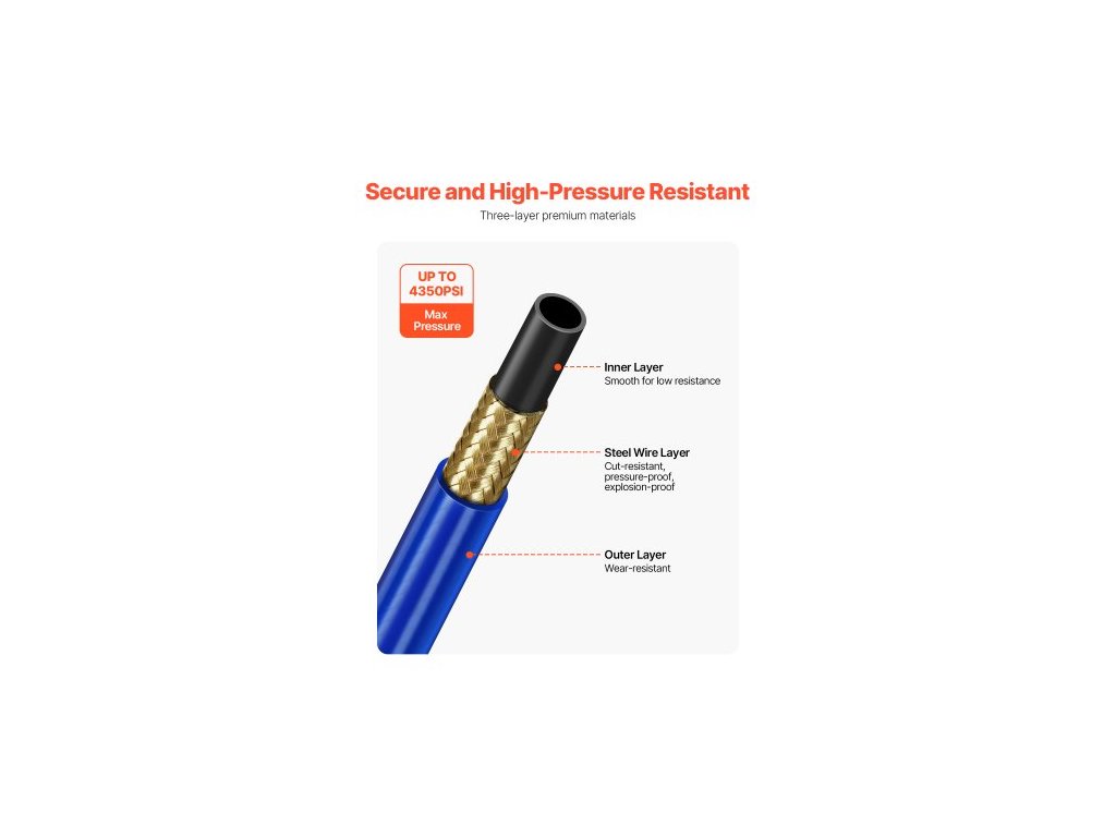 Hadice pro bezvzduchové stříkání barev 25 stop, univerzální bezvzduchová stříkací hadice 1/4 palce, flexibilní vysokotlaká bezvzduchová stříkací hadice 4350 PSI, vícevrstvá vyztužená ocelová opletená hadice pro stříkací pistoliStandardizovaný design konektoru