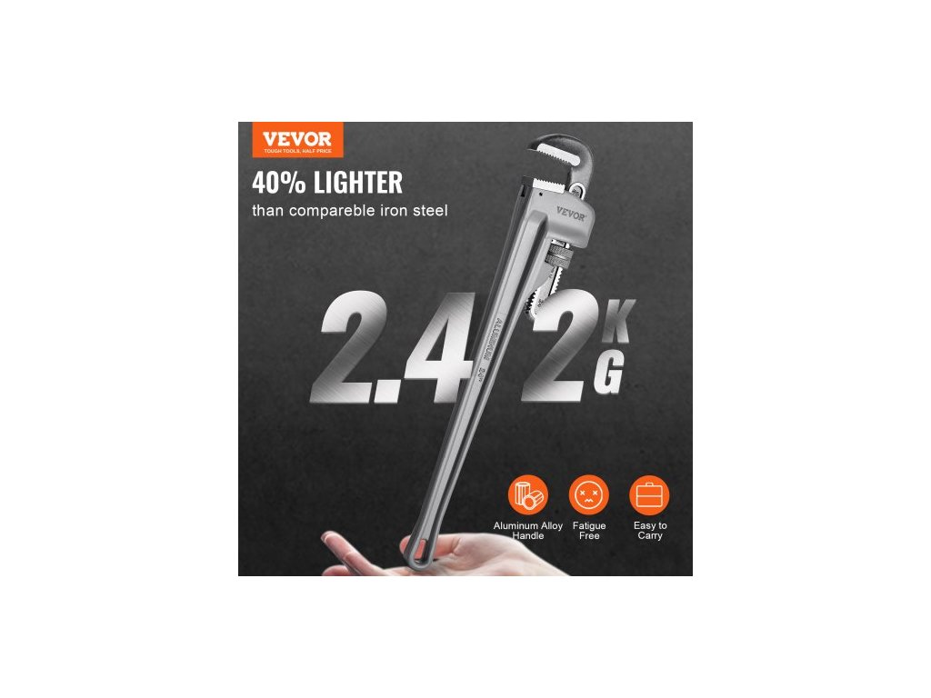 Hasák , 24" hliníkový rovný hasák, nastavitelný instalatérský klíč, s vysoce pevnou čelistí a ergonomickou rukojetí, snadno přenosný, závěsný design, pro vodovodní potrubí, opravy automobilůLehká konstrukce