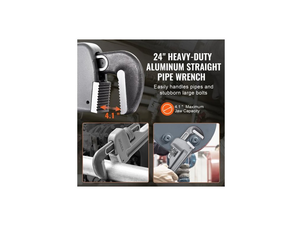 Hasák , 24" hliníkový rovný hasák na trubky, nastavitelný instalatérský klíč, s vysoce pevnou čelistí a ergonomickou rukojetí, snadno přenosný, závěsný design, pro vodovodní potrubí, opravy automobilů