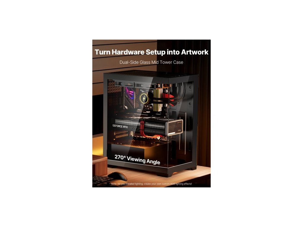 Herní počítačová skříň , Mid-Tower, počítačová skříň s tvrzeným skleněným panelem s vysokým prouděním vzduchu, prachový filtr, 2 x 120 mm ventilátory, správa kabelů, pro GPU do délky 360 mm, kompatibilní s ATX/M-ATX/ITXVylepšený estetický vzhled