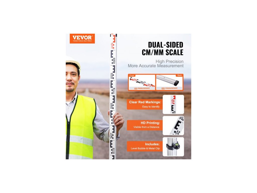Hliníková lať , 4M metrická teleskopická měřicí lať, oboustranná stupnice v CM/MM nivelační lať, hliníková slitina, geodetická lať s vodováhou a přepravní taškou pro měření domů, stěn a podlah