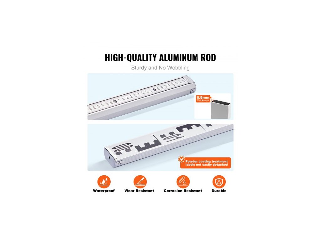 Hliníková lať , 4M metrická teleskopická měřicí lať, oboustranná stupnice v CM/MM nivelační lať, měřicí lať z hliníkové slitiny s vodováhou a přepravní taškou pro měření domů, stěn a podlahVysoce přesná nivelační lať