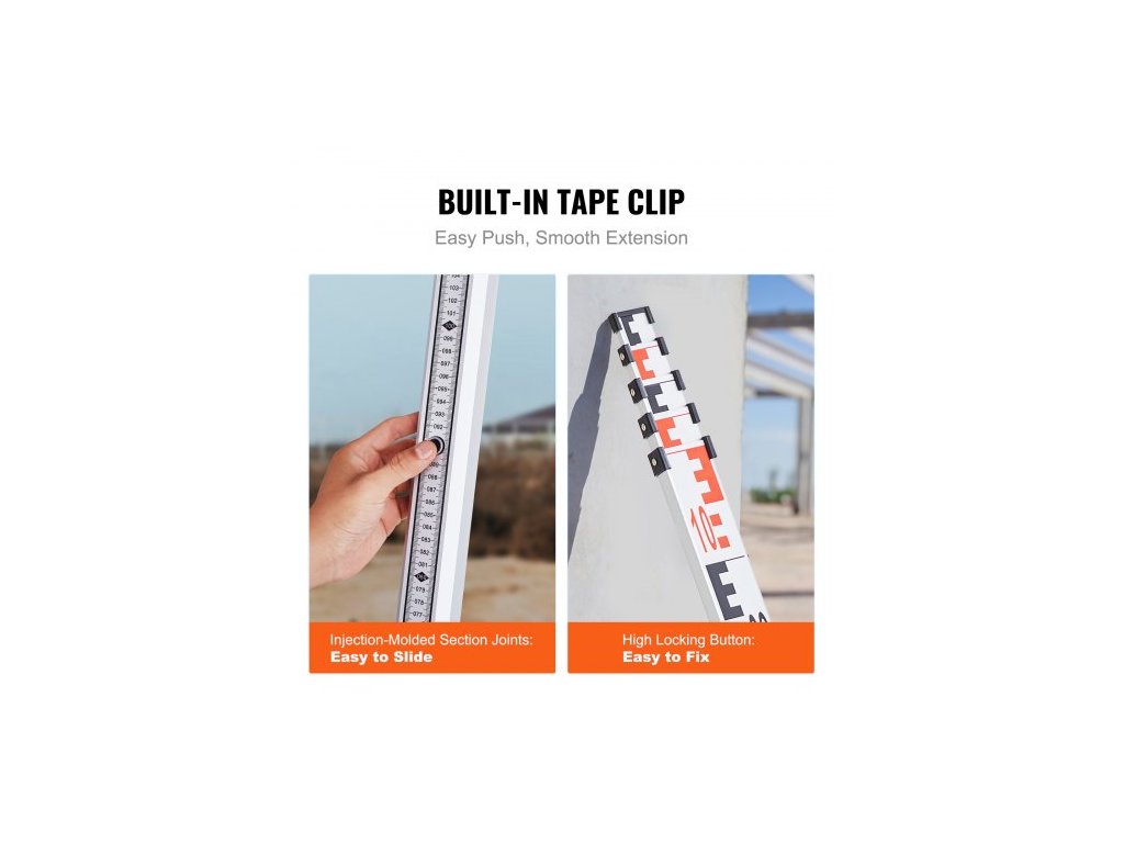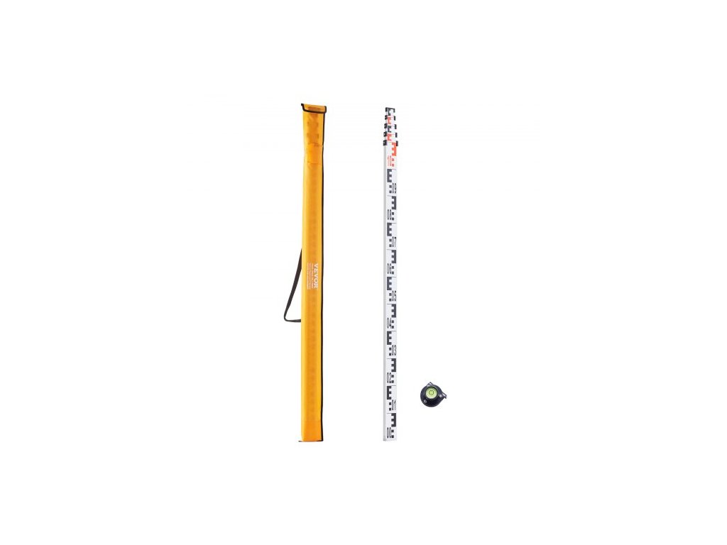 Hliníková lať , 5M metrická teleskopická měřicí lať, oboustranná stupnice v CM/MM nivelační lať, hliníková slitina, geodetická lať s vodováhou a přepravní taškou pro měření domů, stěn a podlah