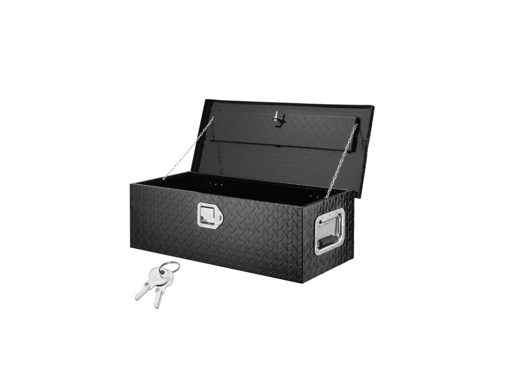 Hliníková skříň na nářadí pro nákladní automobily, Diamond Plate s boční rukojetí a klíči na zámky, Úložná skříň na nářadí s organizérem pro pickup, korbu nákladního auta, obytný vůz, přívěs, 762 x 330 x 244 mm, černá