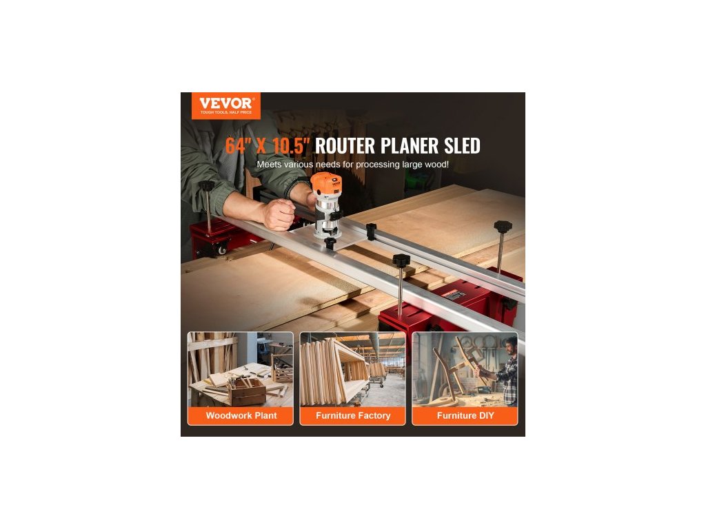 Frézovací saně, 64 palců/162,6 cm, Přenosný a snadno nastavitelný přípravek pro zplošťování desek, Frézovací saně pro dřevo pro kutily na zplošťování desek, Vodicí přípravek pro deskové frézky, Hoblovací stroj pro zplošťování dřeva, Domácí kutilyBez námahy zplošťujte dřevo