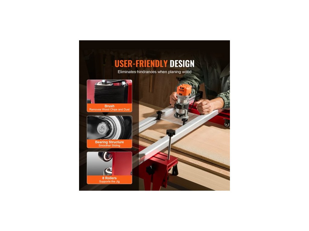 hoblovací frézka, 64 palců/162,6 cm, přenosný a snadno nastavitelný přípravek pro zplošťování desek, hoblovací frézka pro dřevo pro kutily, vodicí přípravek pro deskové frézky, hoblovací stroj pro zplošťování dřeva, domácí kutily