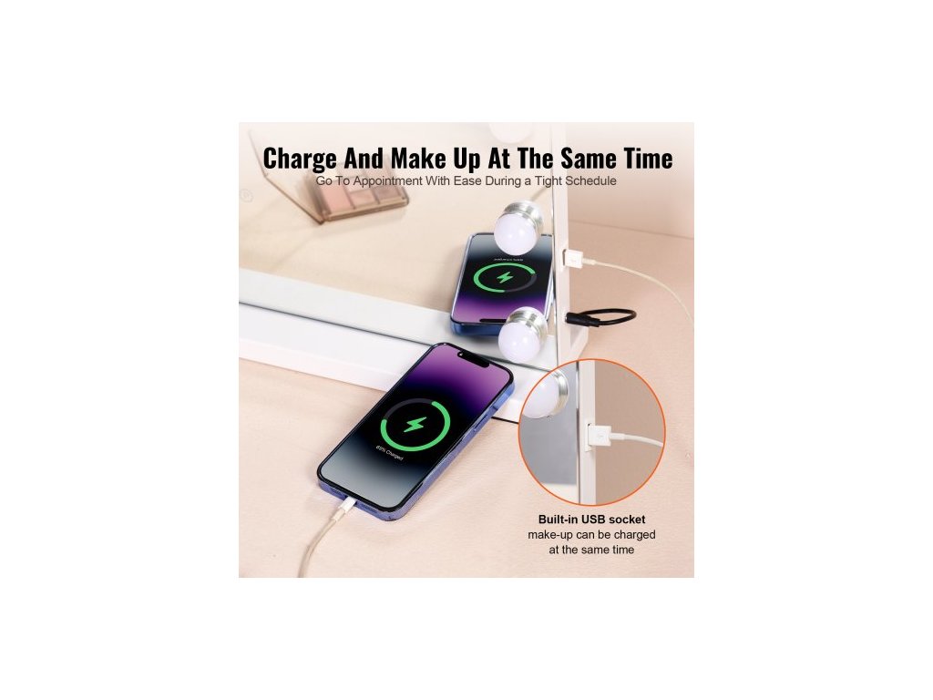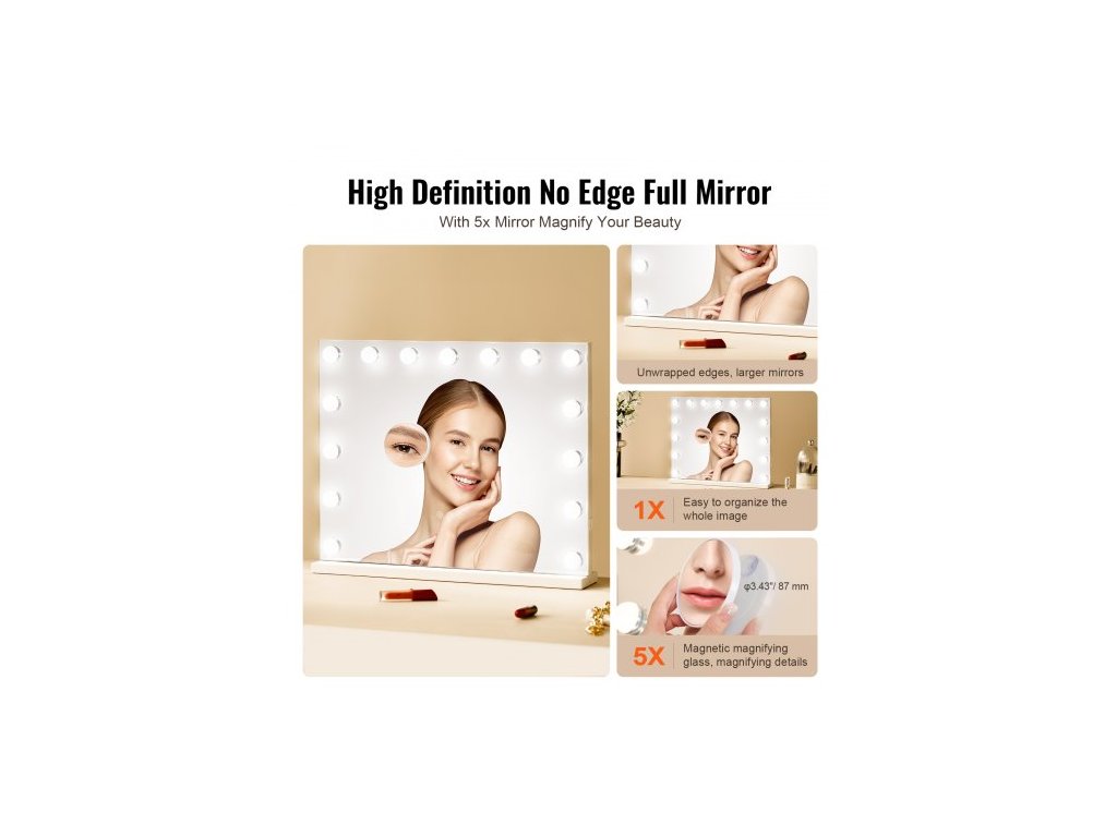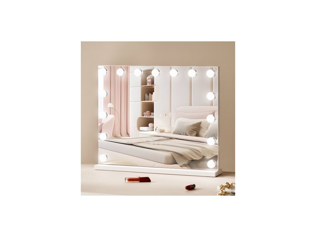Hollywoodské toaletní zrcátko s osvětlením a USB, stolní, nástěnný držák, 58x46 cm