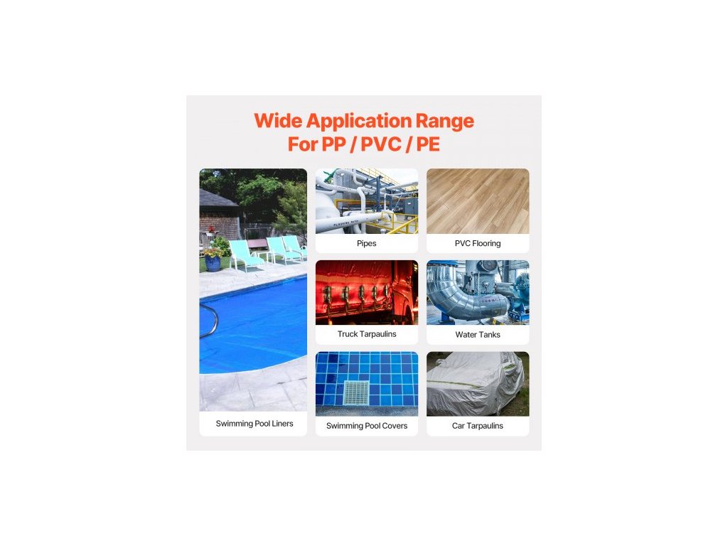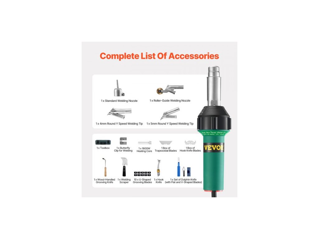 Horkovzdušná svářečka plastů , horkovzdušná pistole 1600 W, svařovací hořák s horkovzdušnou pistolí 122-1112 ℉ pro PVC, TPO a vinyl, sada pro svařování plastových střech s 14 příslušenstvím - sada na nářadí, tryska, válec, nože pro PP/PE/PVCRychlé ohřev 1600 W