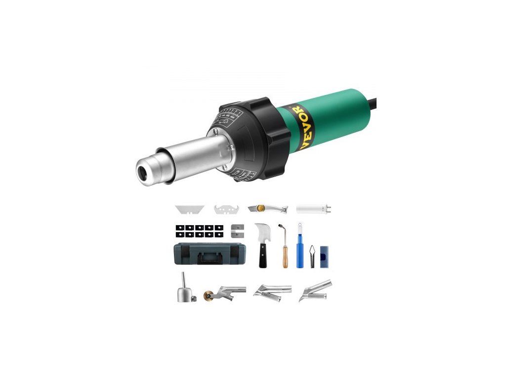 Horkovzdušná svářečka plastů , horkovzdušná pistole 1600 W, horkovzdušný hořák 122–1112 ℉, svařovací hořák na PVC, TPO a vinyl, sada pro svařování plastových střech s 14 příslušenstvím – nářadí, tryska, válec, nože pro PP/PE/PVC