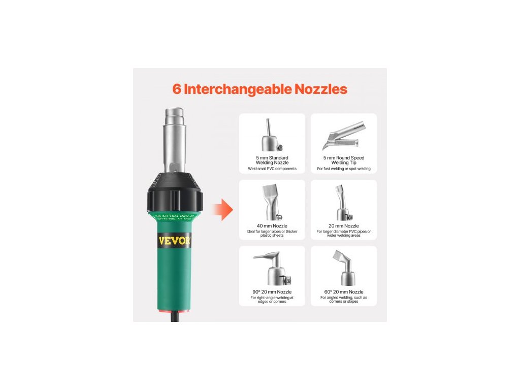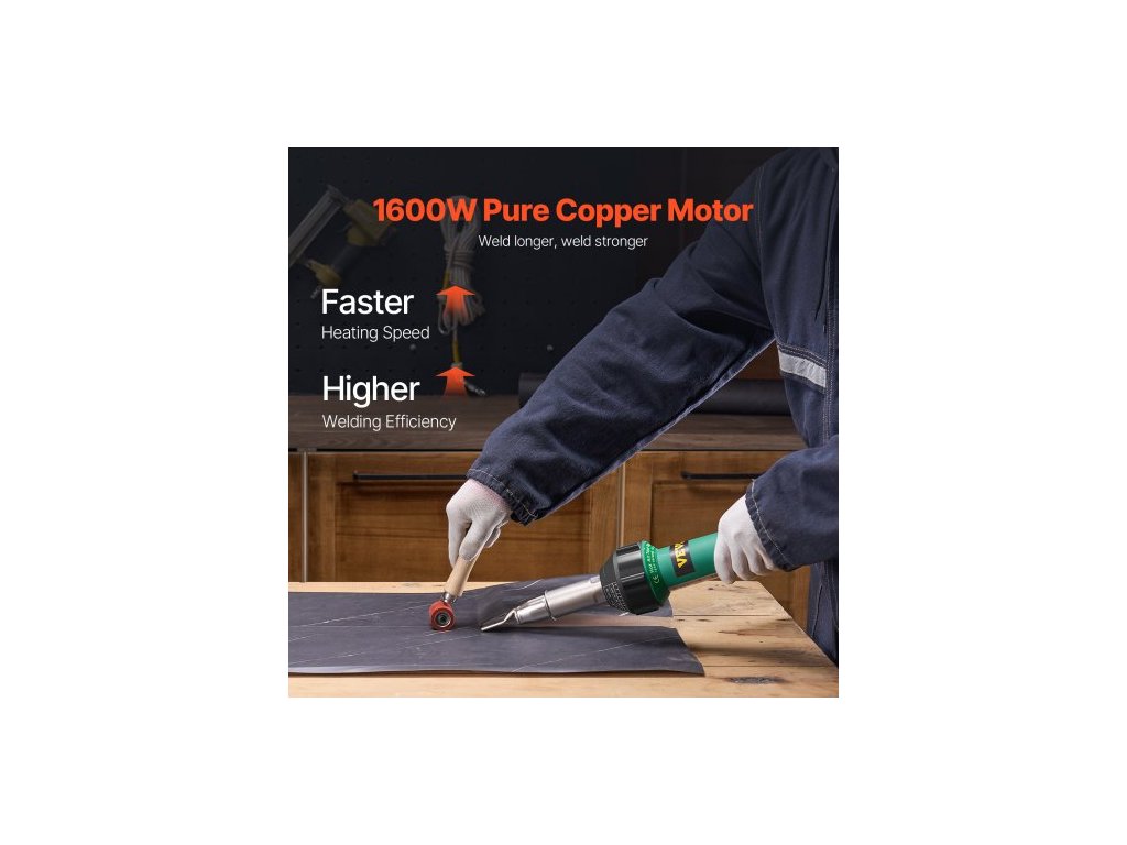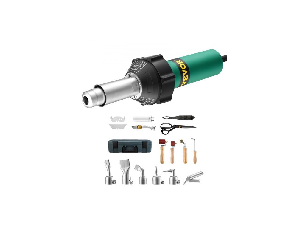 Horkovzdušná svářečka plastů , horkovzdušná pistole 1600 W, svařovací hořák s horkovzdušnou pistolí 122-1112 ℉ pro PVC, TPO a vinyl, sada pro svařování plastových střech s 17 příslušenstvím - sada nářadí, tryska, válec, nože pro PP/PE/PVCRychlé ohřev 1600 W