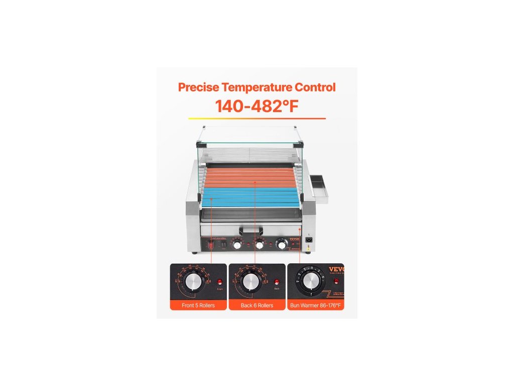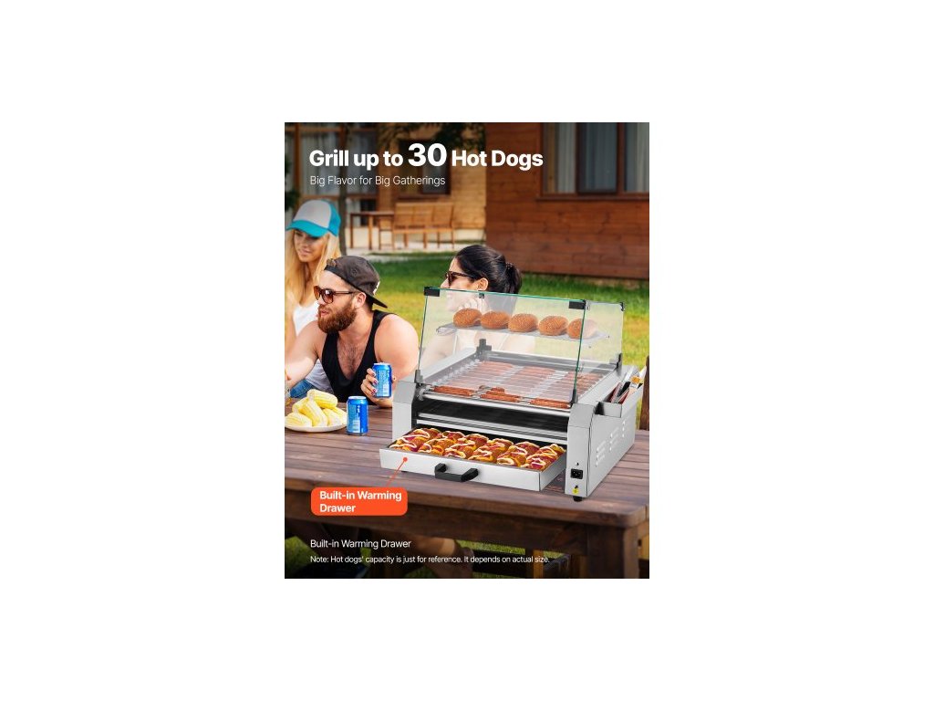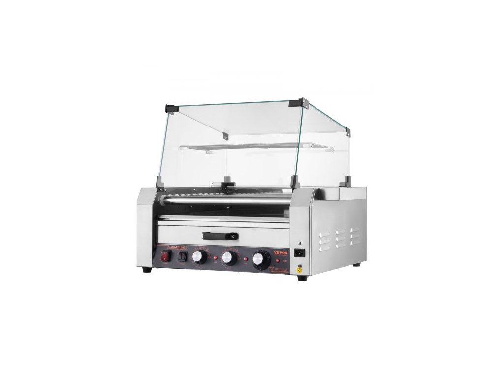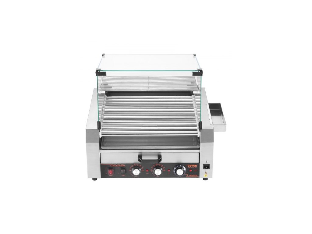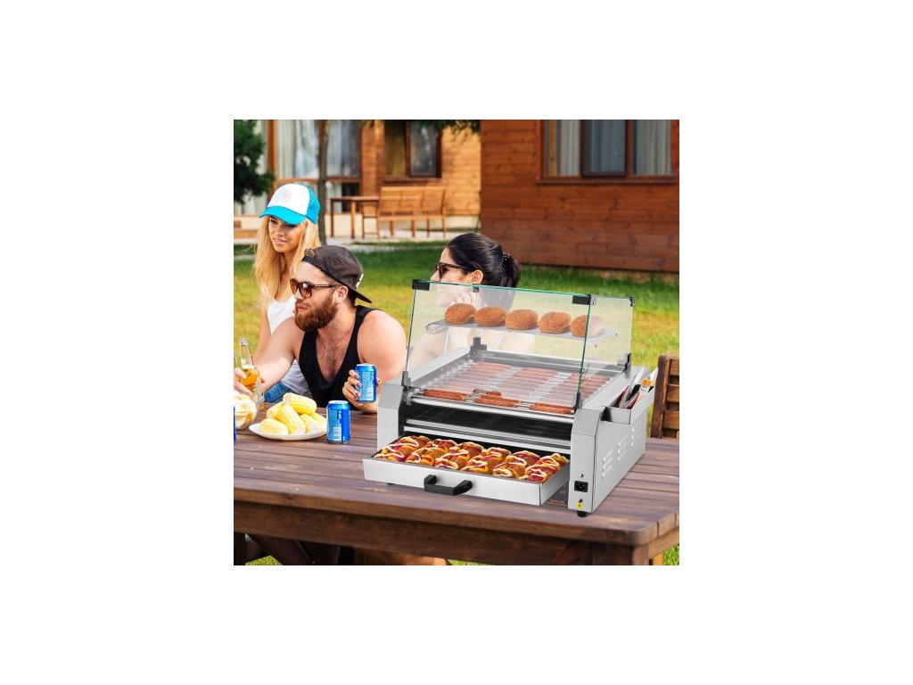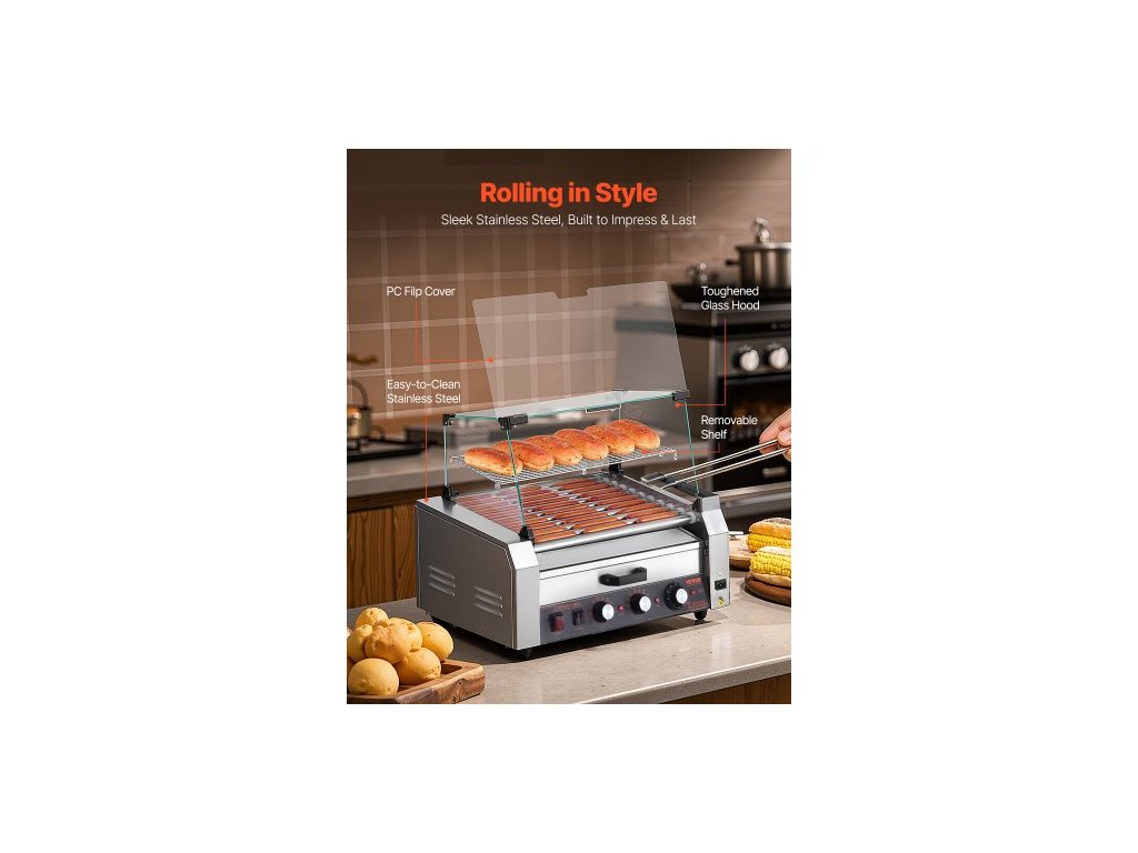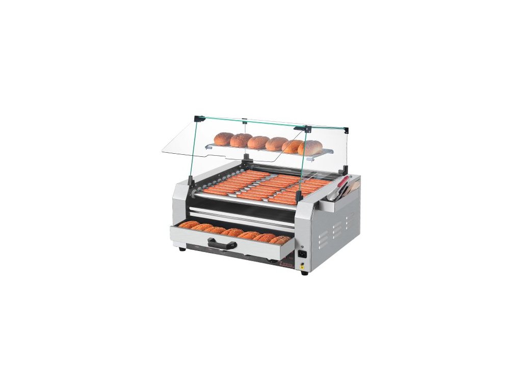 Hot Dog Roller, 30 a 11 válečků na hot dogy, gril na klobásy z nerezové oceli, 2400W stroj na hot dogy s ohřívačem housek, kryt, 3stupňová regulace teploty, boční úložný box, miska na odkapávání oleje, pro domácnost i komerční použití.