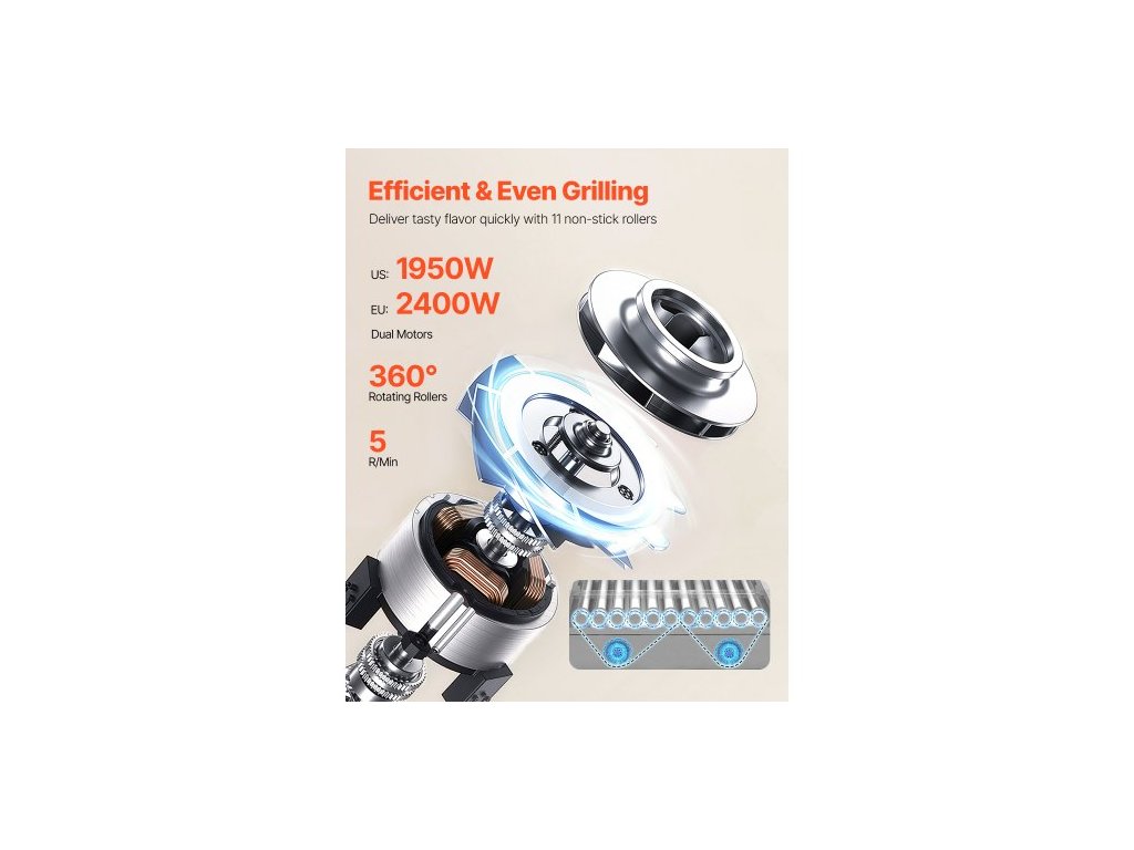 Rozsah teplot: 140-482℉ / 60-250℃,Materiál těla a válečku: Prémiová nerezová ocel,Napětí: AC220-240V 50HZ,Číslo modelu: HD11,Otáčky válečku: 5 ot./min,Materiál krytu: Tvrzené sklo, PC,Hmotnost výrobku: 51 lbs / 23,1 kg ±5%,Příkon: 2400W