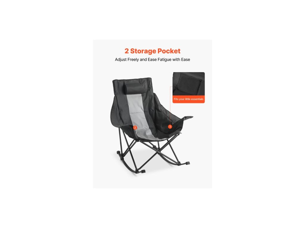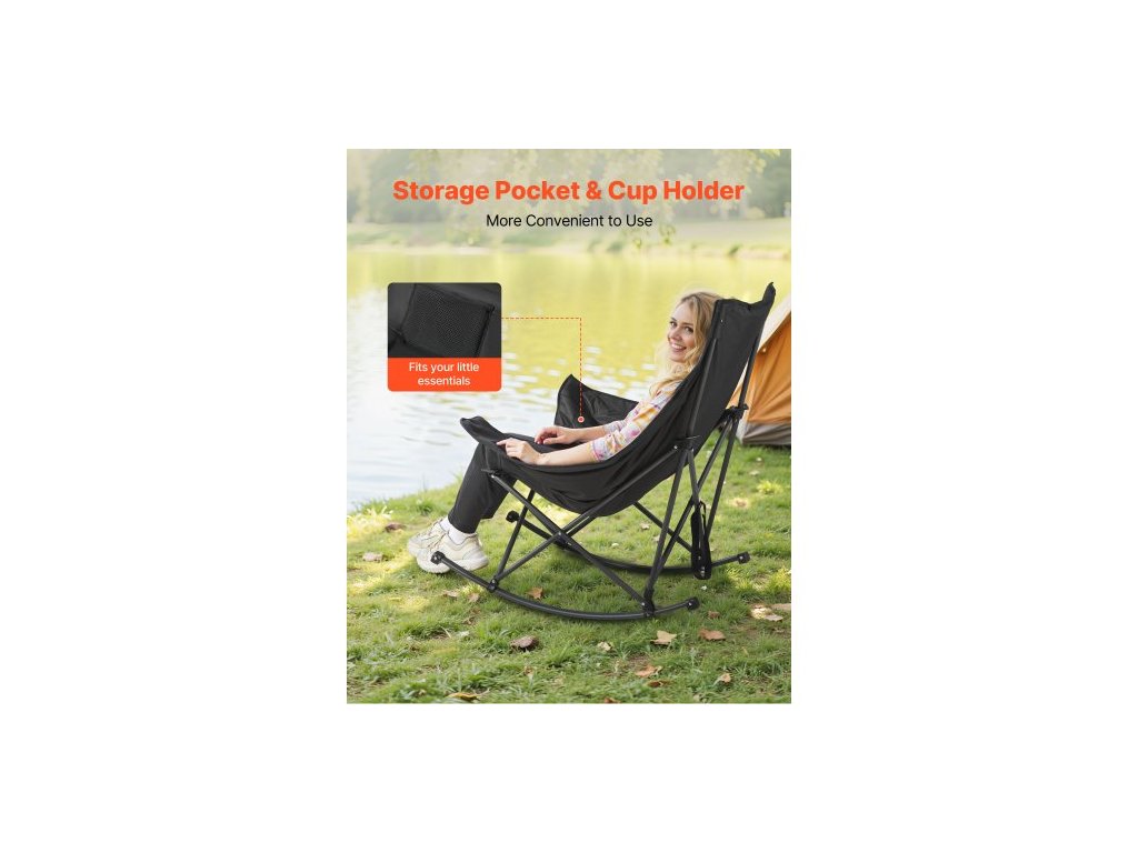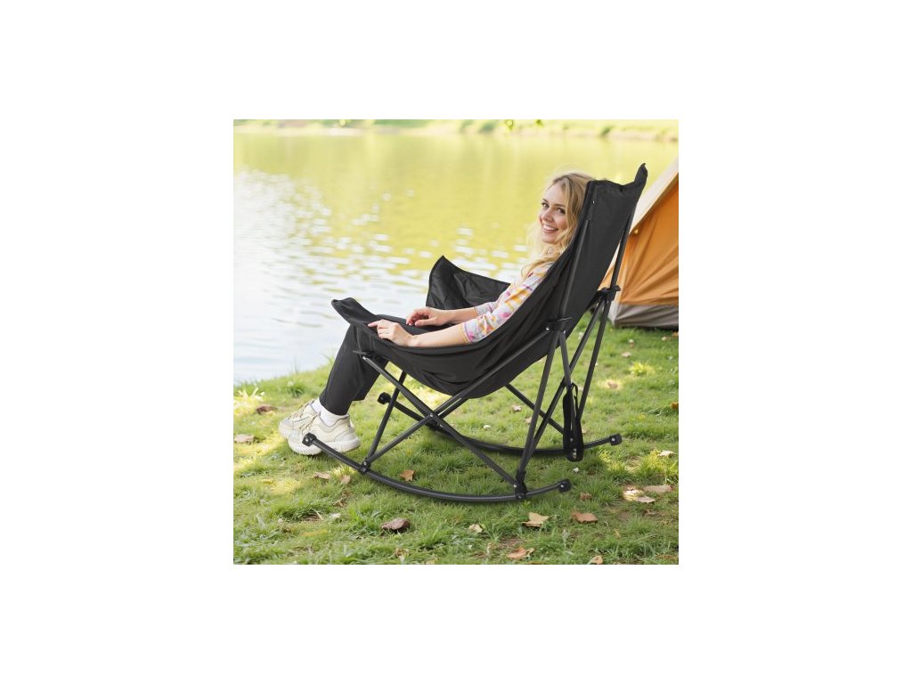 Houpací kempingové křeslo , přenosné skládací houpací křeslo, odolné zahradní křeslo s držákem na nápoje a kapsou, nosnost 100 kg, plně polstrované kempingové křeslo pro venkovní terasu, verandu, zahraduSkládací houpací křeslo