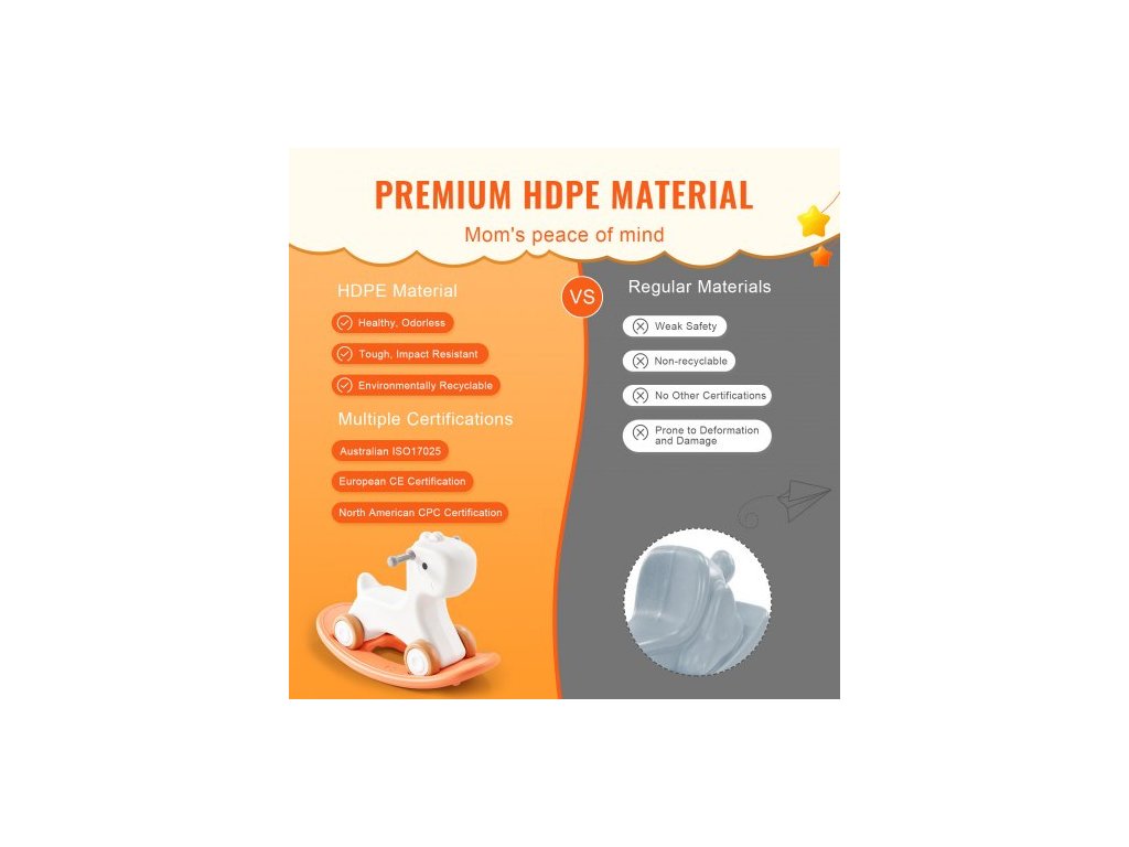 Nosnost: 36 kg, Číslo modelu: C-YM089, Vhodný věk: 1-3 roky, Hmotnost výrobku: 1,85 kg/4,07 libry, Rozměry výrobku: 690 x 310 x 460 mm/27,16 x 12,20 x 18,11 palců, Hlavní materiál: HDPE