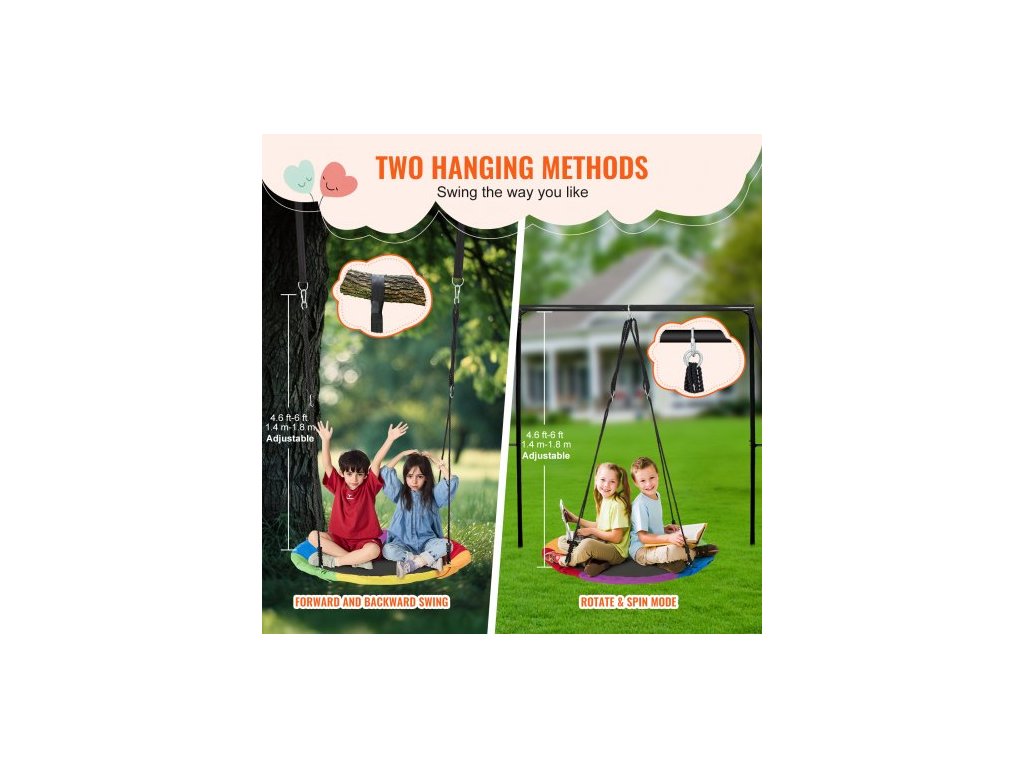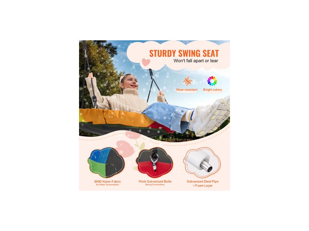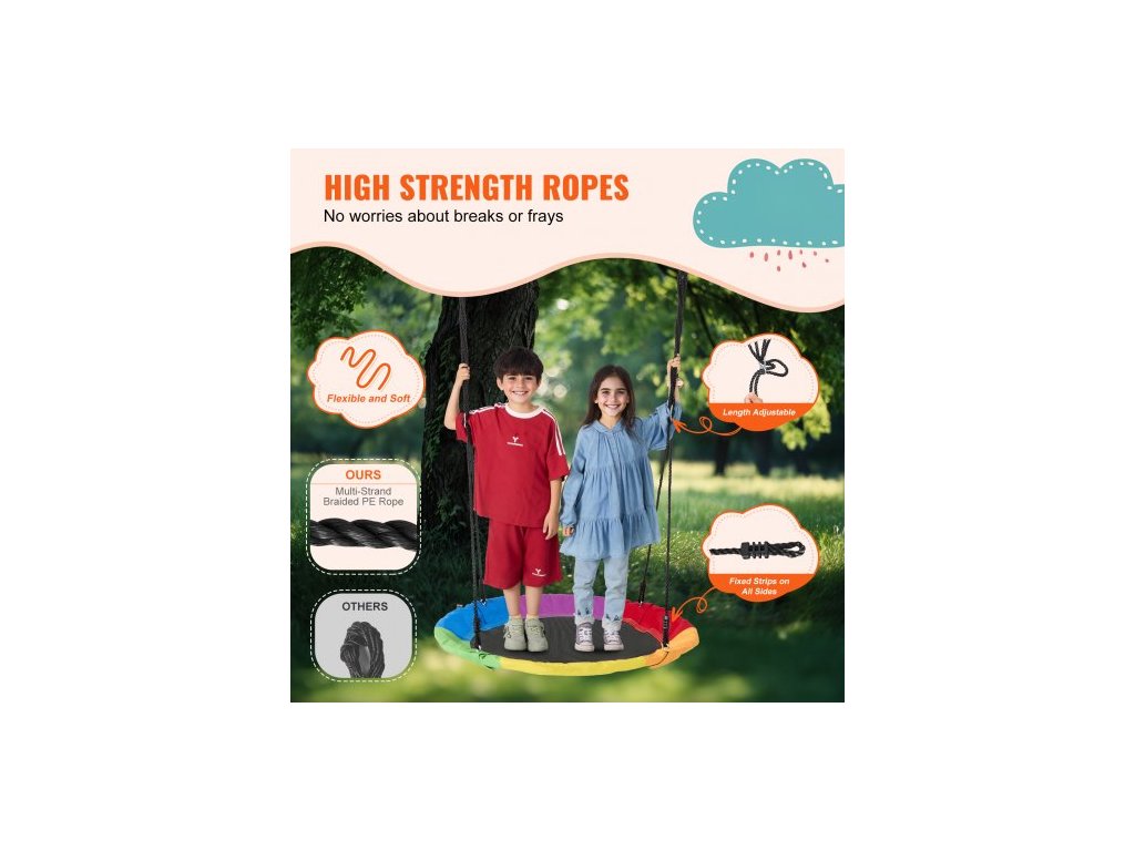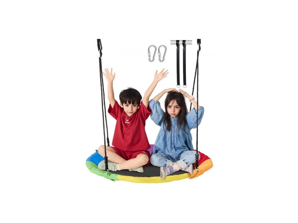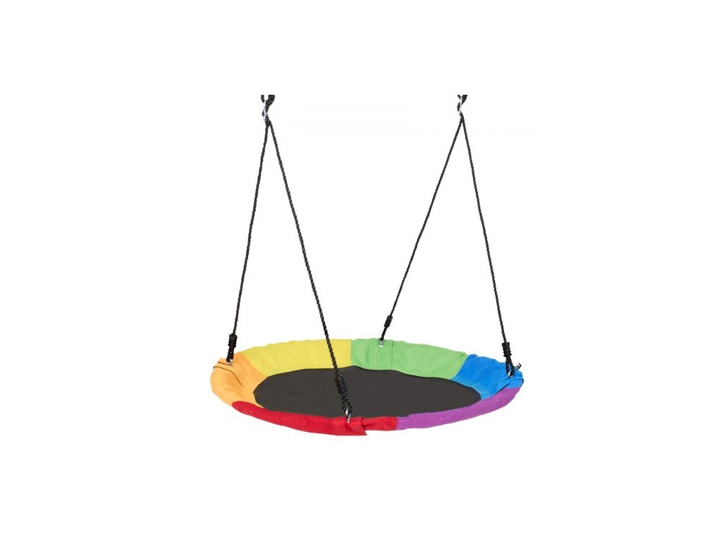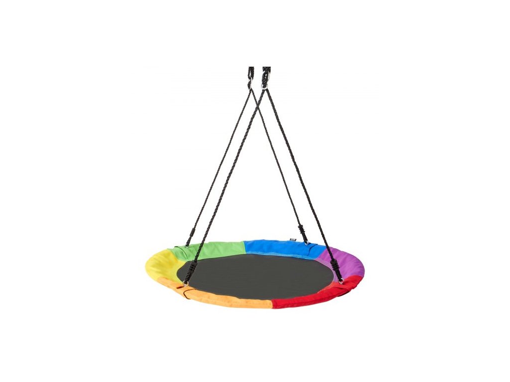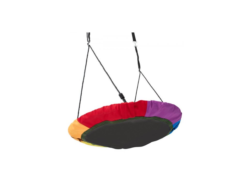 Houpačka na stromě , talířová houpačka o průměru 102 cm, nosnost 340 kg, sedák z oxfordské látky 900D se 2 popruhy na zavěšení na stromě a nastavitelnými vícepramennými lany, kulatá houpačka pro děti venku, vícebarevná