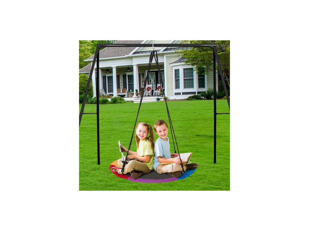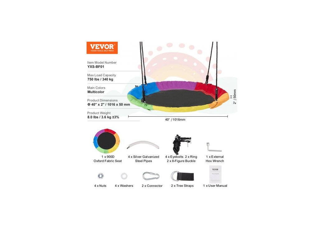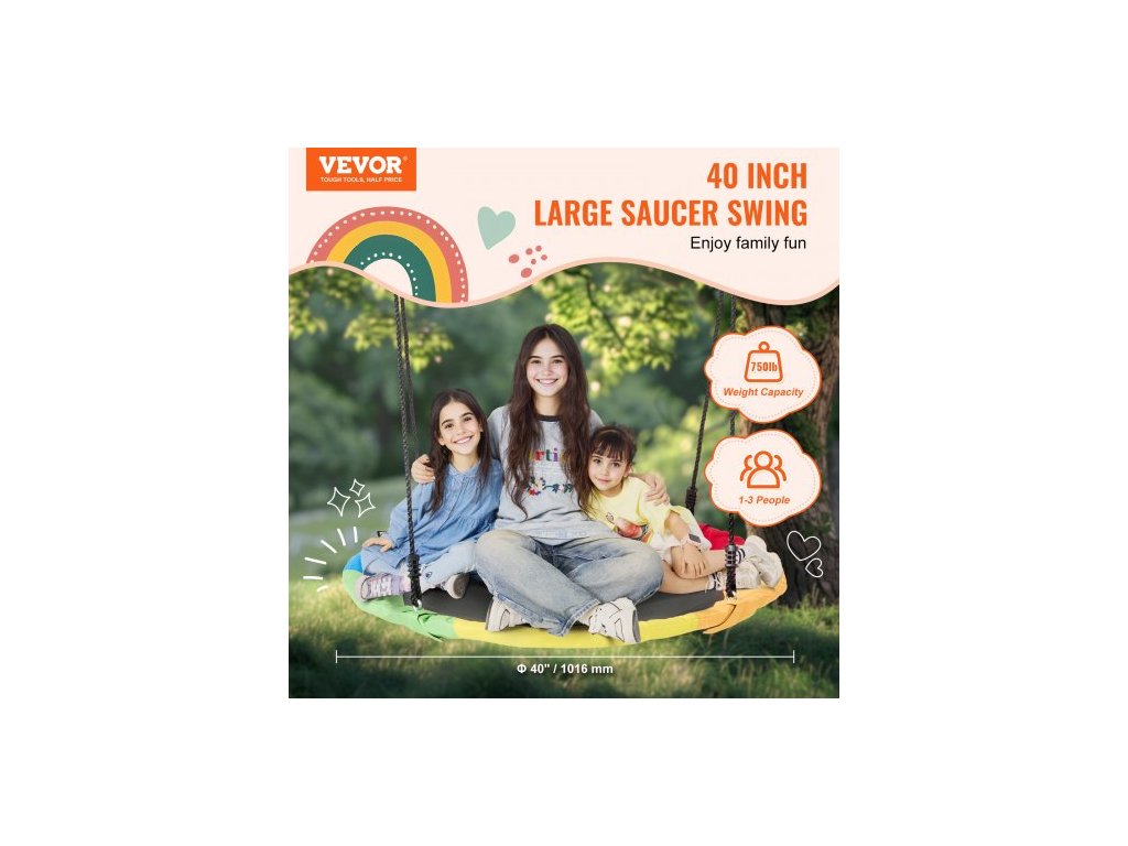 Houpačka na stromě, talířová houpačka 40 palců, nosnost 750 liber, sedák z oxfordské látky 900D se 2 závěsnými popruhy a nastavitelnými vícepramennými lany, kulatá houpačka pro děti venku, vícebarevnáPřineste více zábavy na vaši zahradu