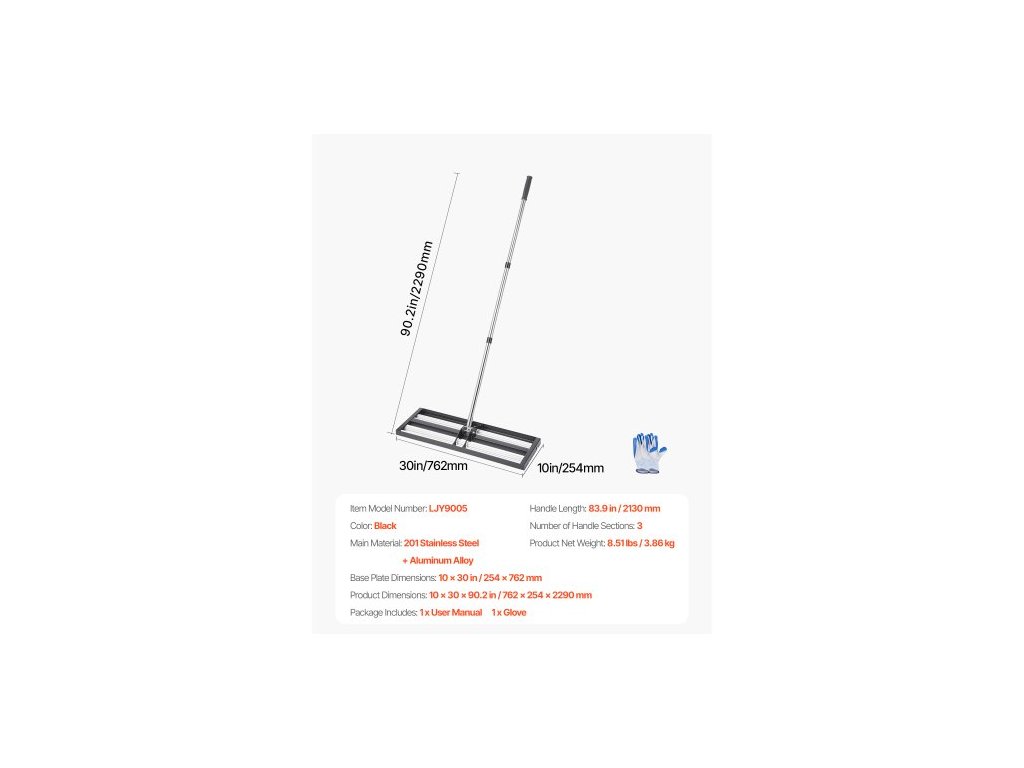 Délka rukojeti: 83,9 palce / 2130 mm,Rozměry základní desky: 10 x 30 palců / 254 x 762 mm,Barva: Černá,Číslo modelu položky: LJY9005,Čistá hmotnost výrobku: 8,51 lbs / 3,86 kg,Počet sekcí rukojeti: 3,Rozměry výrobku: 10 x 30 x 90,2 palce / 762 x 254 x 2290 mm,Hlavní Materiál: nerezová ocel 201 + hliníková slitina