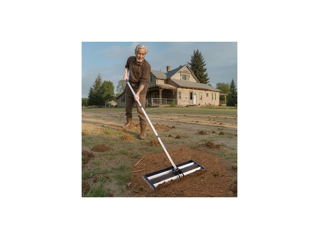 Hrábě na zarovnávání trávníku , zarovnávač trávníku s nastavitelnou rukojetí 83,9 palce, základová deska 30x10 palců, odolná a nerezová kovová zarovnávač půdy, nástroj pro snadné zarovnávání trávníku pro golfové hřištěRobustní a odolný