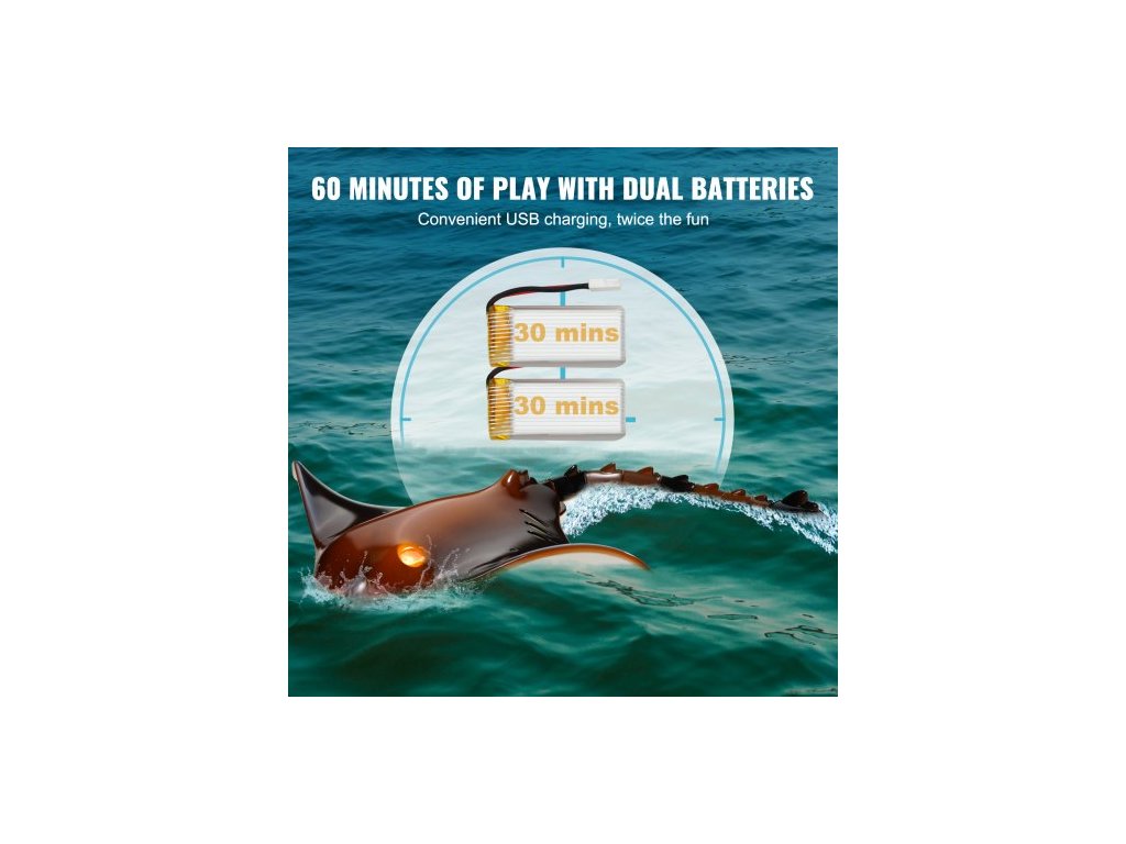 hračka manta na dálkové ovládání, 2,4 GHz vysoce simulační robot manta se světlem, 2 dobíjecí baterie, do bazénu, vany nebo jezera, RC hračka s loděmi pro chlapce a dívky od 6 let, dárek