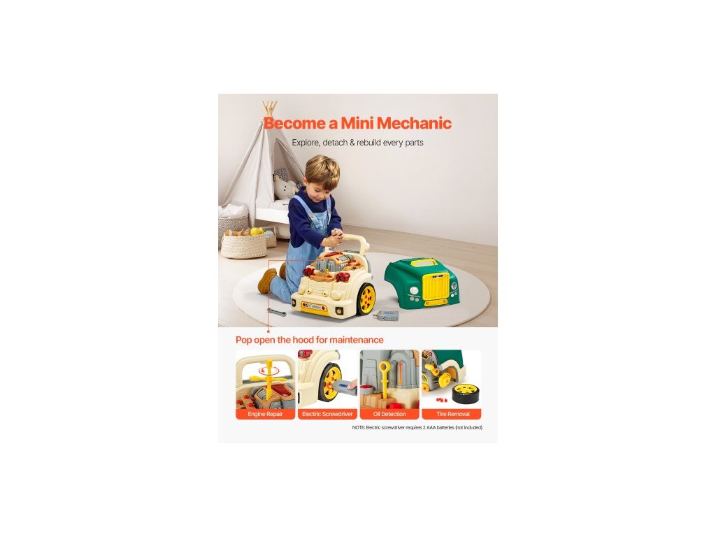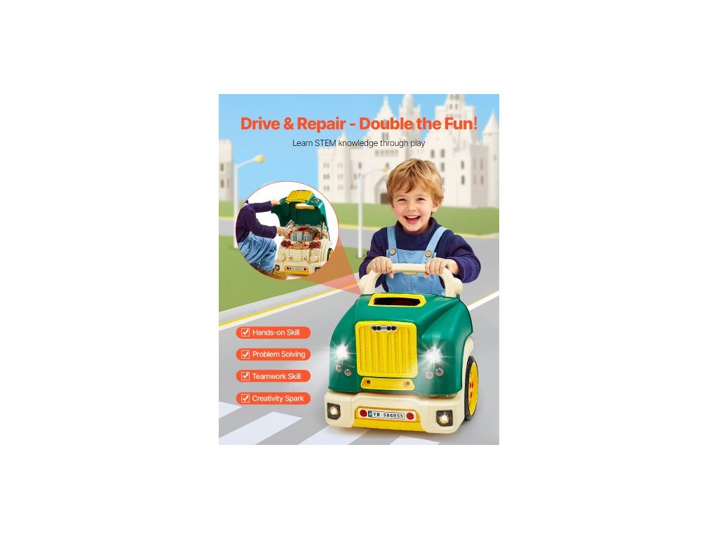 Hračka s motorem, 60 dílků, Dětská sada na opravu auta s odnímatelnými díly, světly a zvuky, volantem a klaksonem, Dětská sada na opravu mechaniků pro batolata od 3 let, zelenáObjevte zábavu s opravou motoru