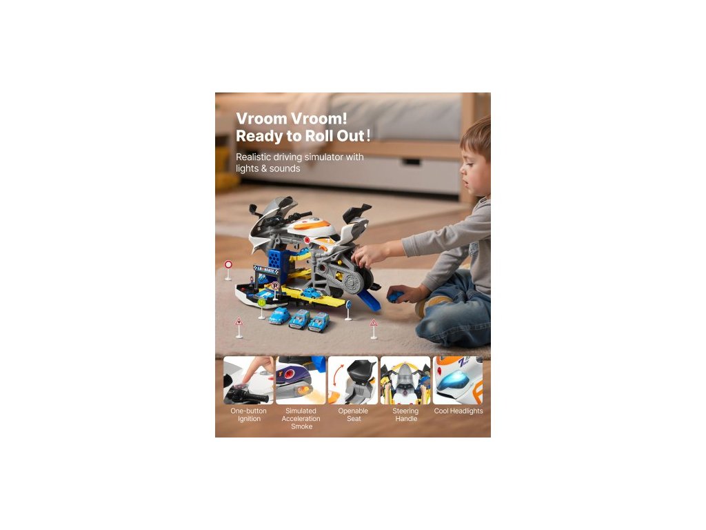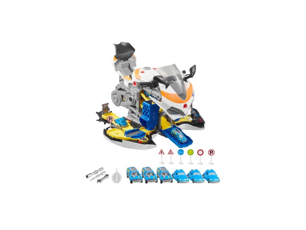 Hračka s motorem motocyklu, 25 dílků, Hračka pro mechaniky motocyklů s odnímatelnými díly, světly a zvuky, simulace jízdy a závodů na dráze, dětská sada pro mechaniky pro batolata od 3 let, žlutáTransformující se motocykl 6 v 1