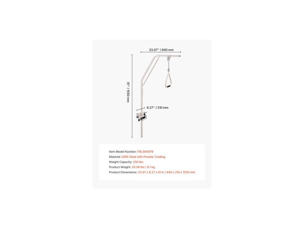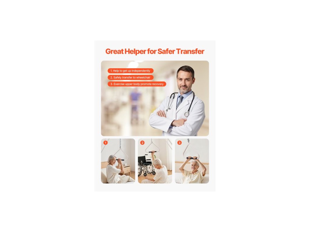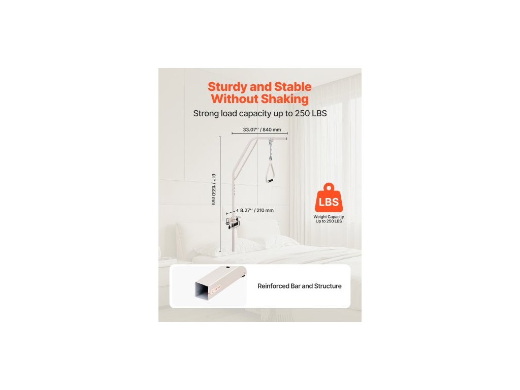 hrazda pro mobilitu postele, hrazda pro lékařské postele se svorkami a kovovým řetězem, nosnost 113 kg, pomocná hrazda pro seniory a osoby se zdravotním postižením, ideální pro domácí péči, nemocnice, pečovatelské domyPomáhá vám pohybovat se samostatněji
