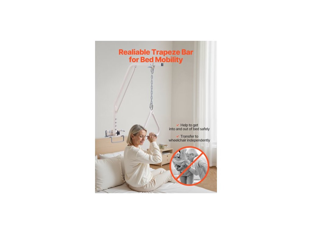 Hrazda pro mobilitu na lůžku, zdravotnická hrazda na lůžku se svorkami a kovovým řetězem, nosnost 113 kg, pomocná hrazda pro seniory a osoby se zdravotním postižením, ideální pro domácí péči, nemocnice, pečovatelské domy