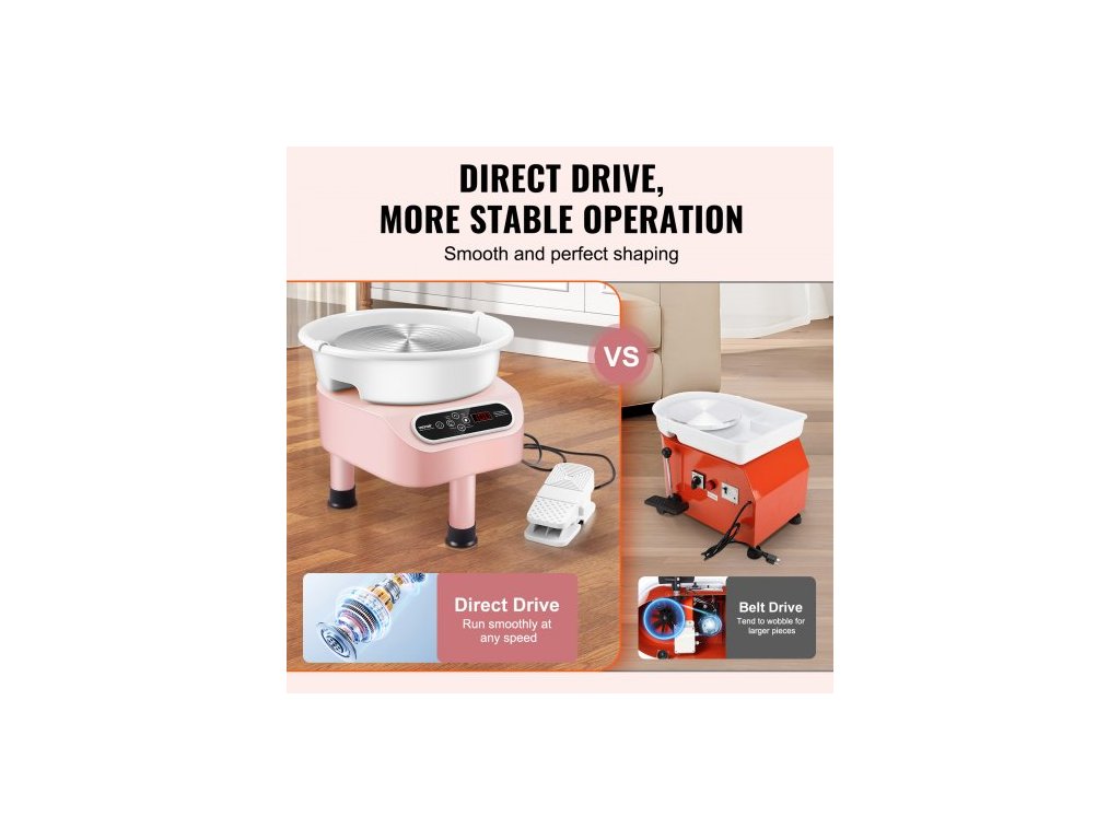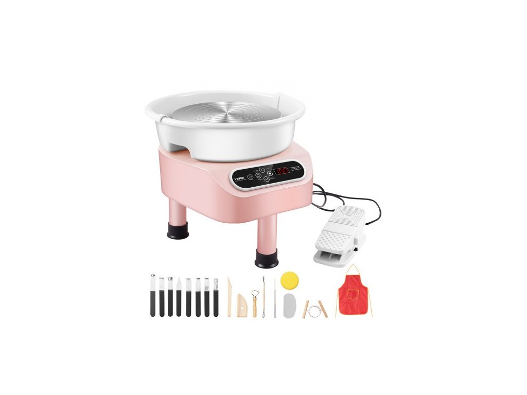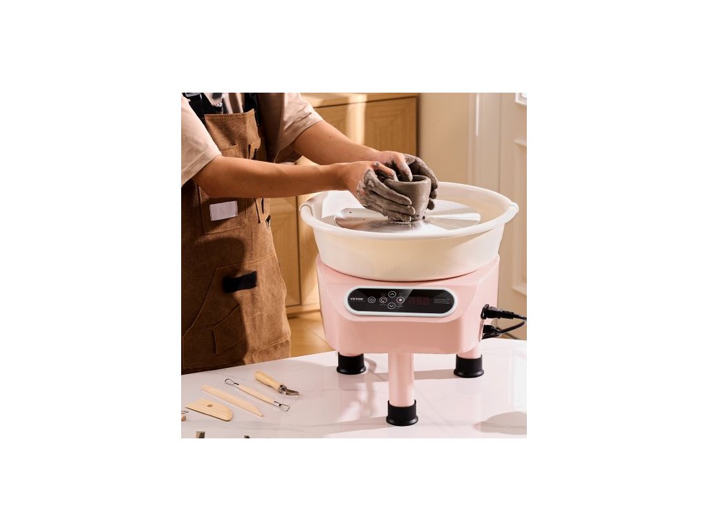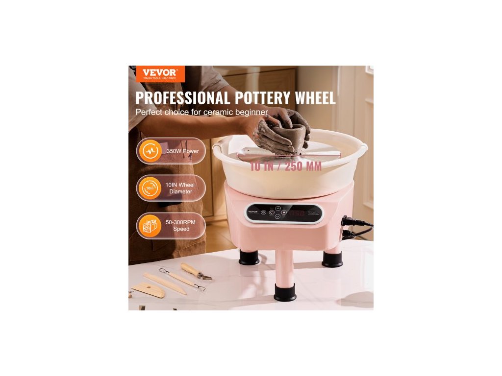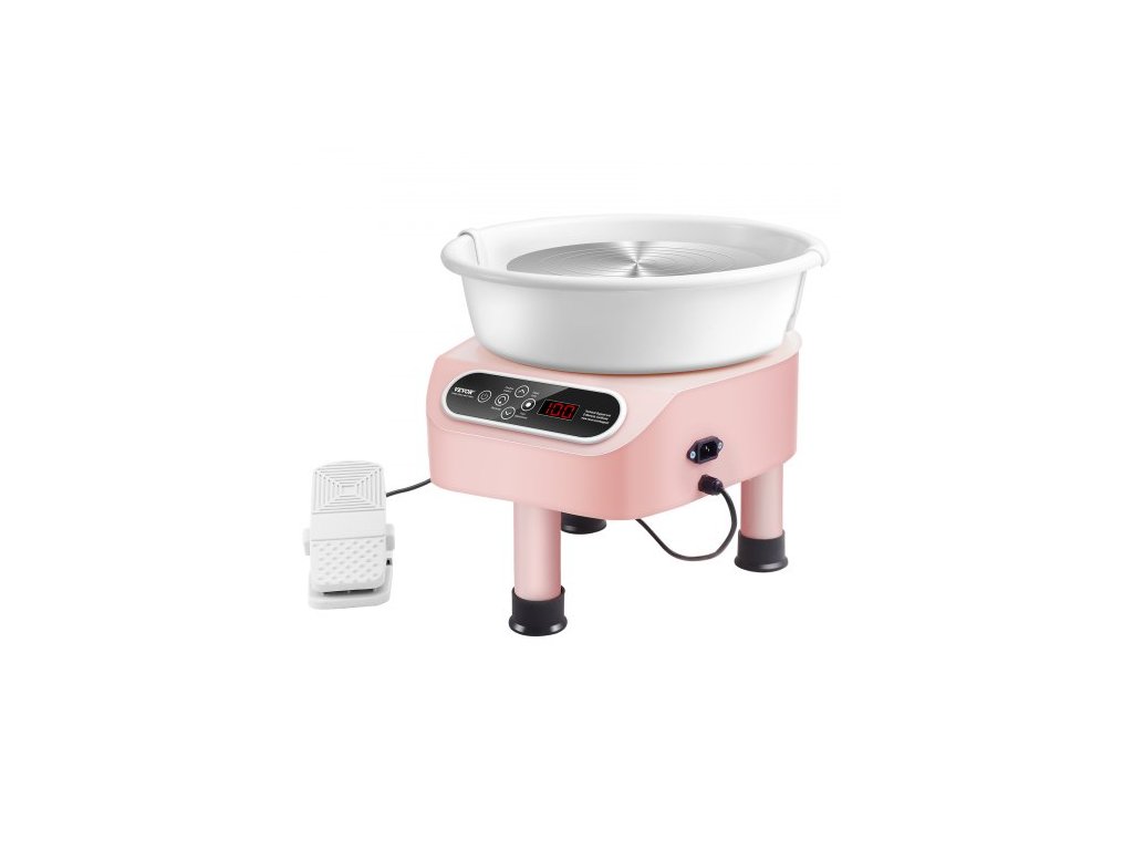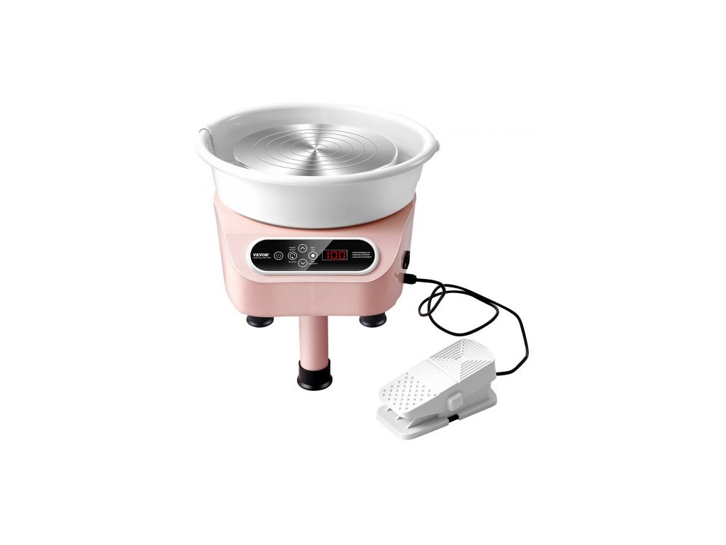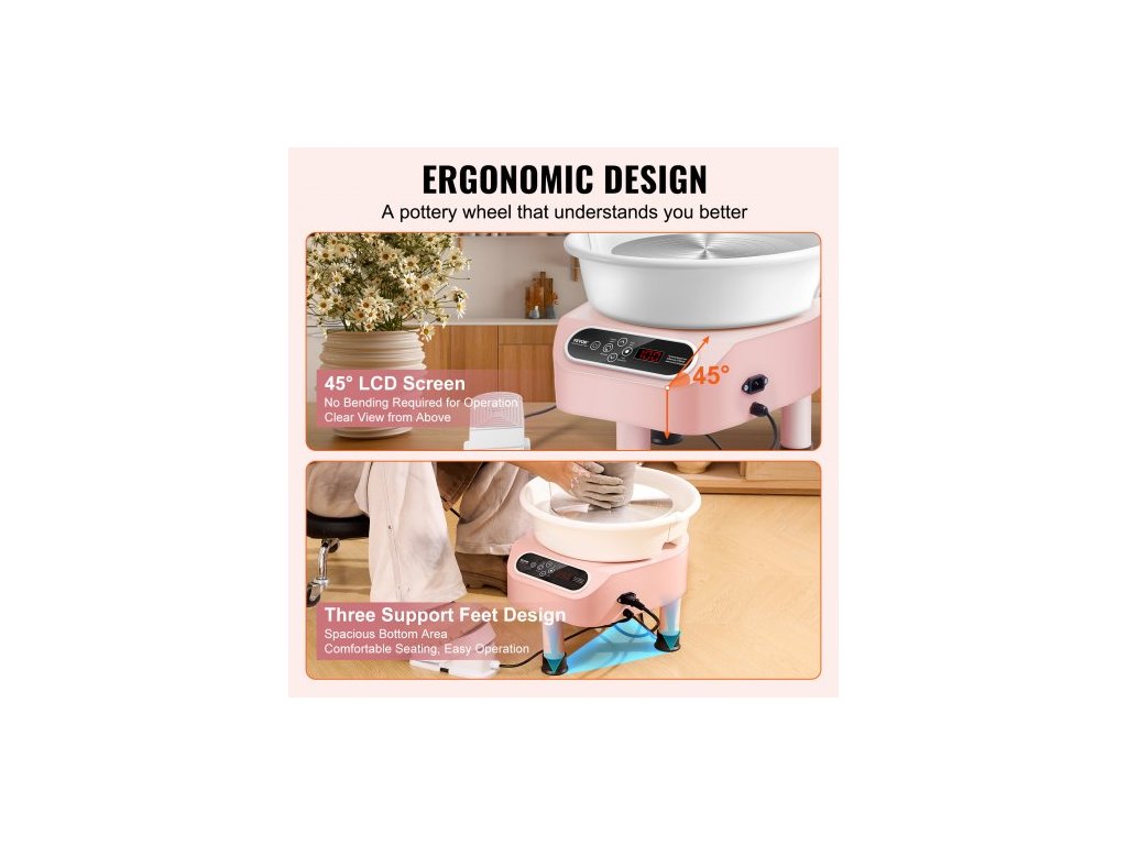 Hrnčířský kruh , 10palcový stroj na tvarování keramiky, elektrický kruh na keramiku o výkonu 350 W s nožním pedálem a dotykovou LCD obrazovkou, keramický kruh s přímým pohonem a 3 podpůrnými nohami pro kutilské umělecké tvoření, růžováVynikající výkon