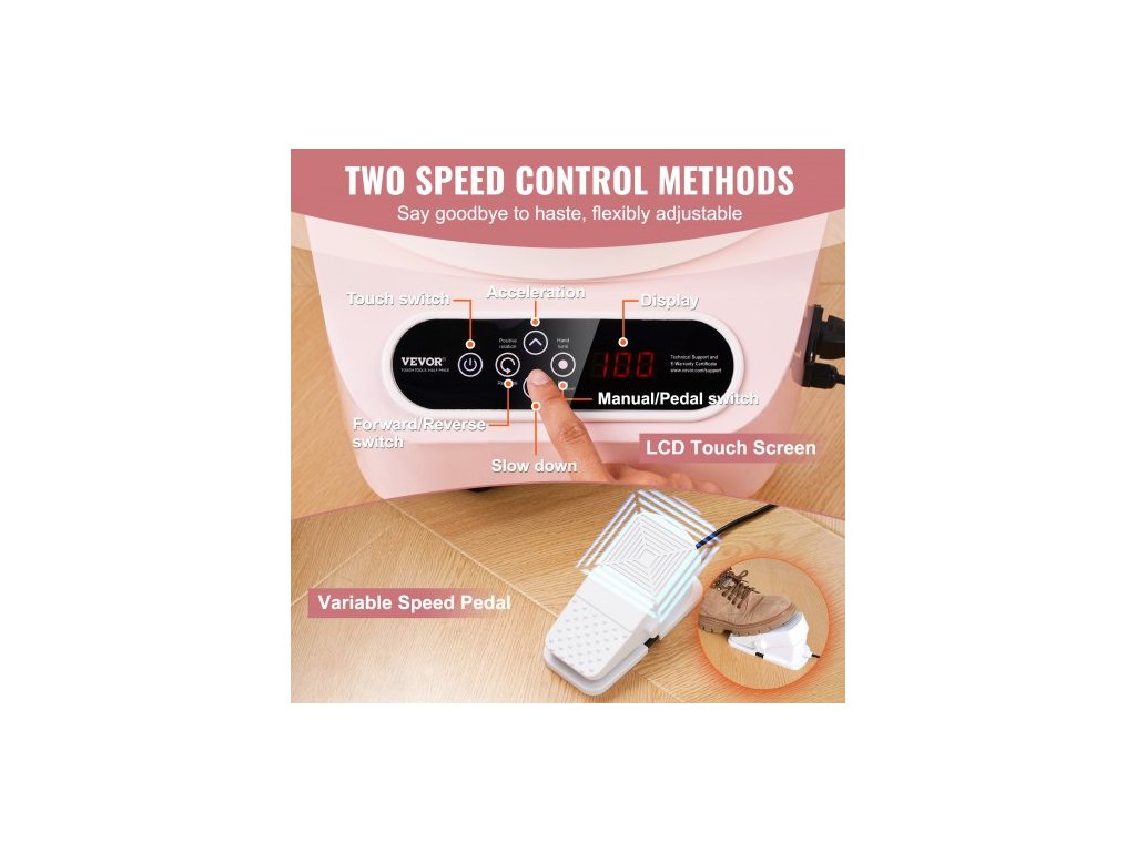 Barva: Růžová,Číslo modelu položky: YT-01,Maximální nosnost hlíny: 3 kg,Ovládání rychlosti: Dotyková obrazovka + nožní pedál,Vzhled: Tři podpůrné nohy,Rozsah otáček: 50-300 ot./min,Maximální výkon: 350 W