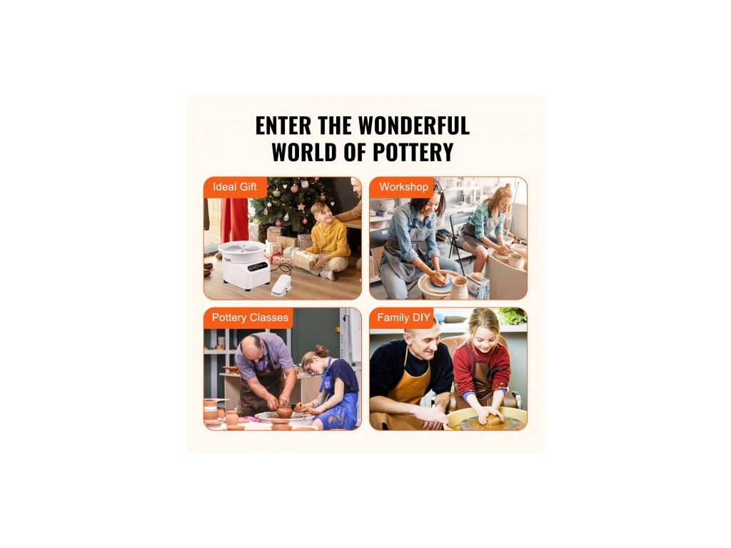 Hrnčířský kruh 11"/27,9 cm Keramický kruh s nožním pedálem a dotykovou obrazovkou, zástěra 350 W, bíláVynikající výkon