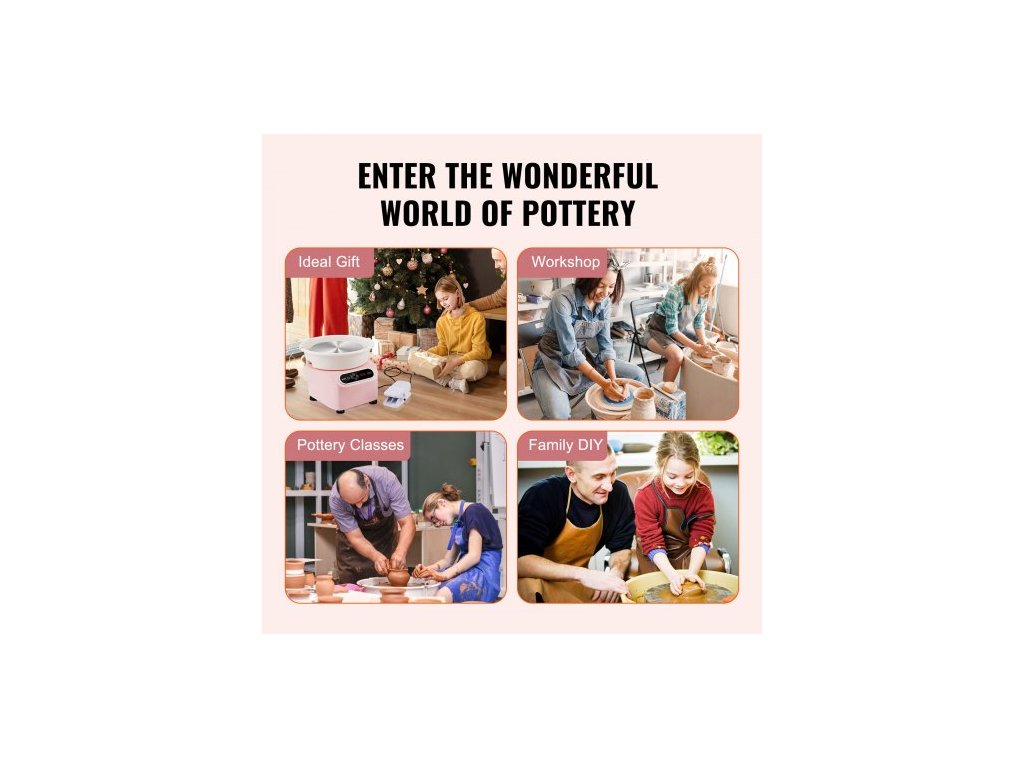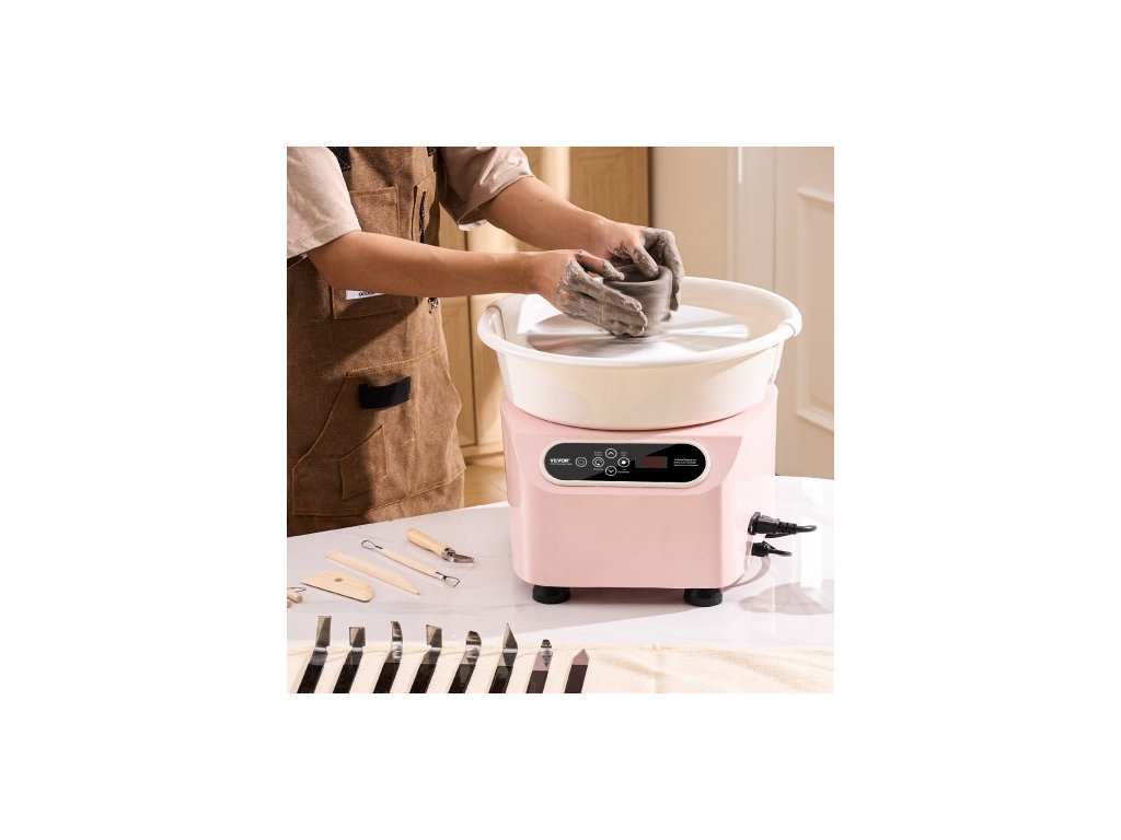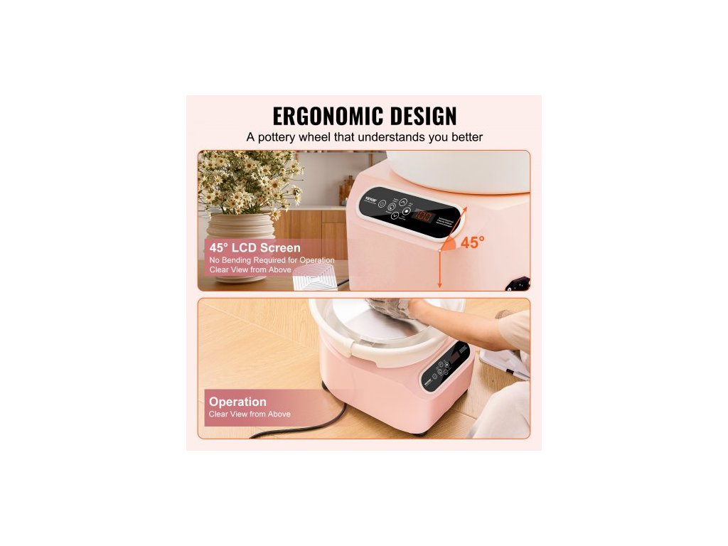 Hrnčířský kruh 11"/27,9 cm Keramický kruh s nožním pedálem a dotykovou obrazovkou, zástěra 450 W, růžováVynikající výkon