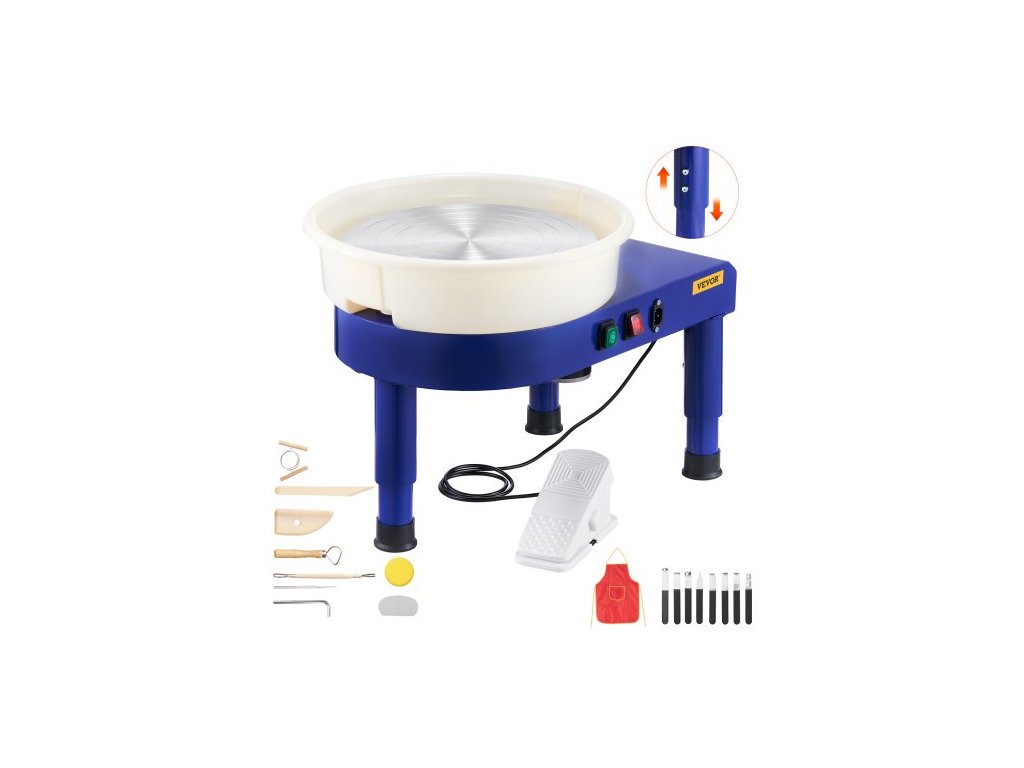 Hrnčířský kruh , stroj na tvarování keramických kruhů 35 cm, nastavitelný pedál s rychlostí 60-300 ot./min, nastavitelná zvedací noha, odnímatelná miska, kompletní sada příslušenství pro umělecké a řemeslné práce, modrý