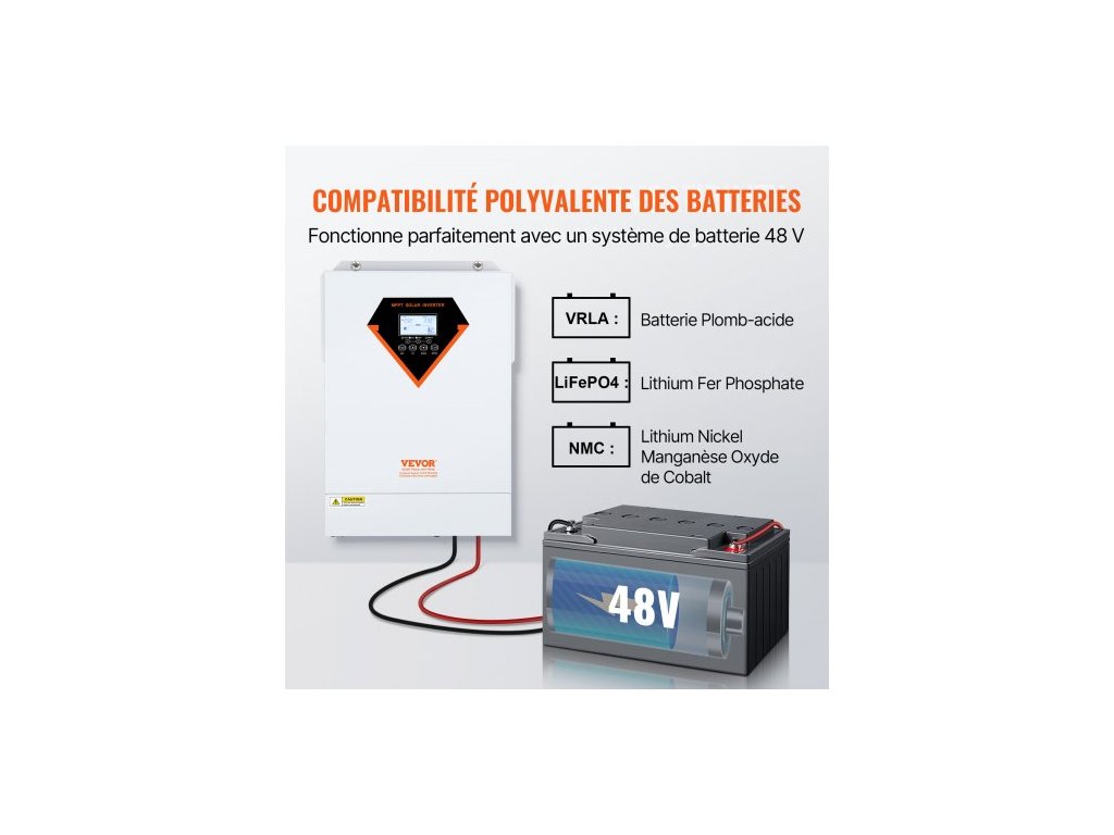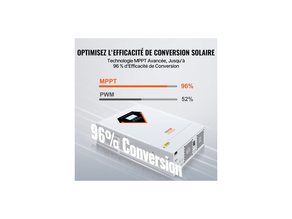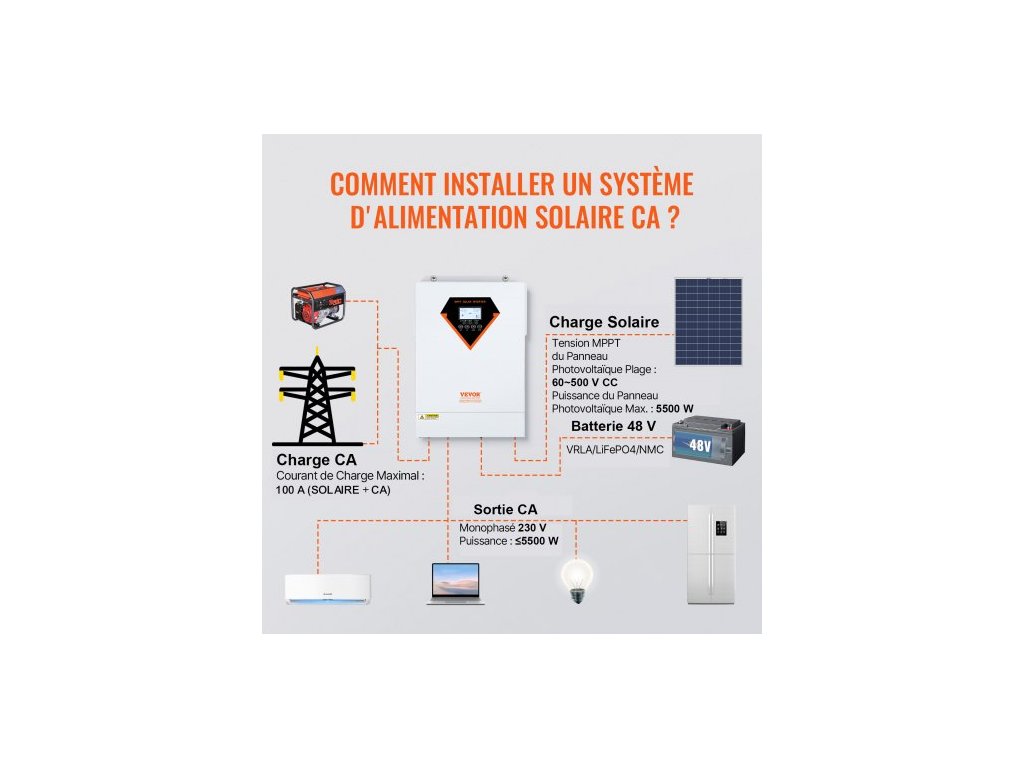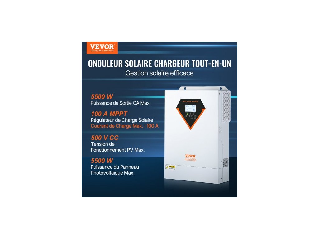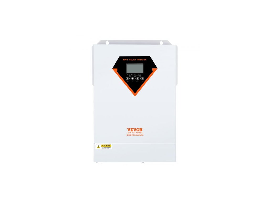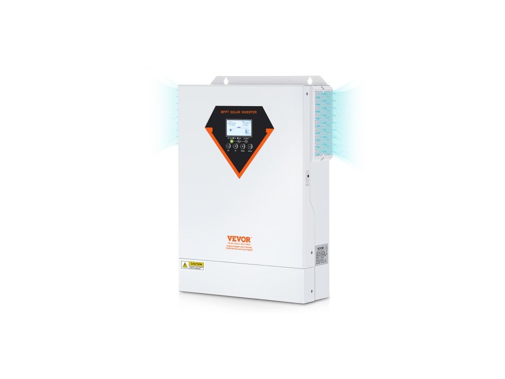 Hybridní solární invertor , 5500 W, čistě sinusová offline invertorová nabíječka, 230 V AC vše v jednom střídač s vestavěným 100A MPPT solárním regulátorem nabíjení, podpora hybridního solárního nabíjení z rozvodné sítěStabilní a spolehlivý zdroj napájení