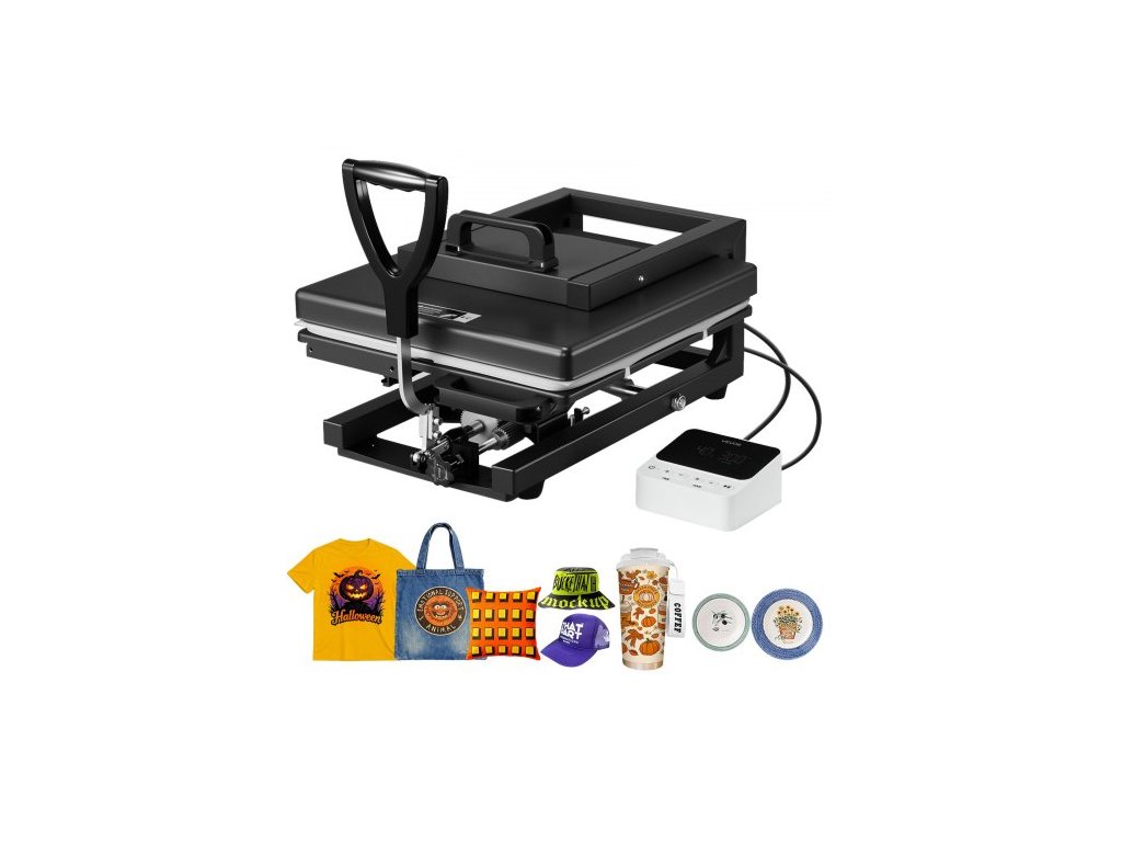 Hybridní termolis , 380 x 380 mm, 5v1 multifunkční, rychlé a rovnoměrné zahřívání, zcela nový patentovaný design, snadné ovládání, sublimační lis na trička/hrnky/sklenice/čepice/talíře, černý