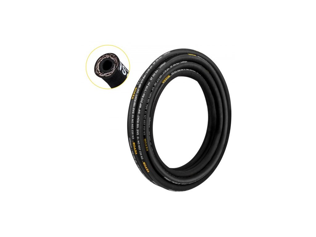 Hydraulická hadice 3/4 palce x 50 stop, Spirálová hydraulická hadice 3120 PSI, Pryžová hydraulická hadice se 2 vysokopevnostními ocelovými drátěnými oplety, Hydraulická hadice pro objem -20℃ až 140℃, Flexibilní hadice na hydraulický olejVysoce kvalitní materiál