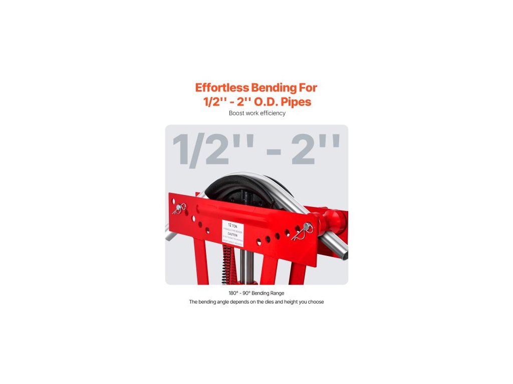 Hydraulická ohýbačka trubek , 12tunová ruční ohýbačka měděných výfukových trubek se 6 matricemi (1/2" - 2") a nastavitelnými válečky 90 - 180°, ohýbačka trubek pro vysoké zatížení pro konstrukci potrubí a zábradlíEfektivní ohýbání pro vysoké zatížení